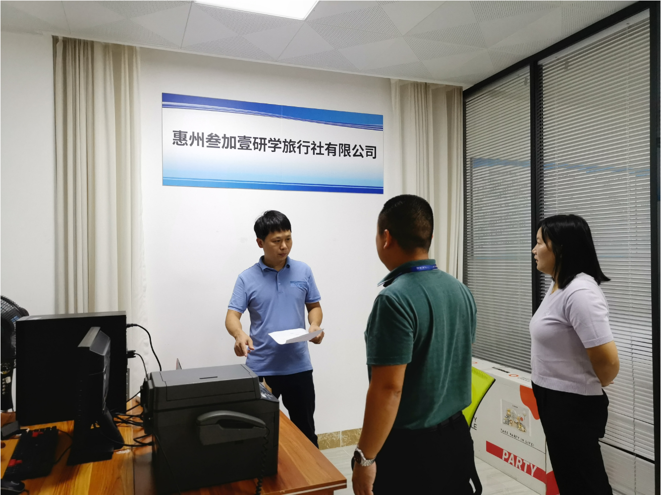8月28日,我局市場(chǎng)管理股工作人員受市文廣旅體局委托,前往羅陽街道,對(duì)1家企業(yè)申請(qǐng)?jiān)O(shè)立旅行社進(jìn)行場(chǎng)地勘察。