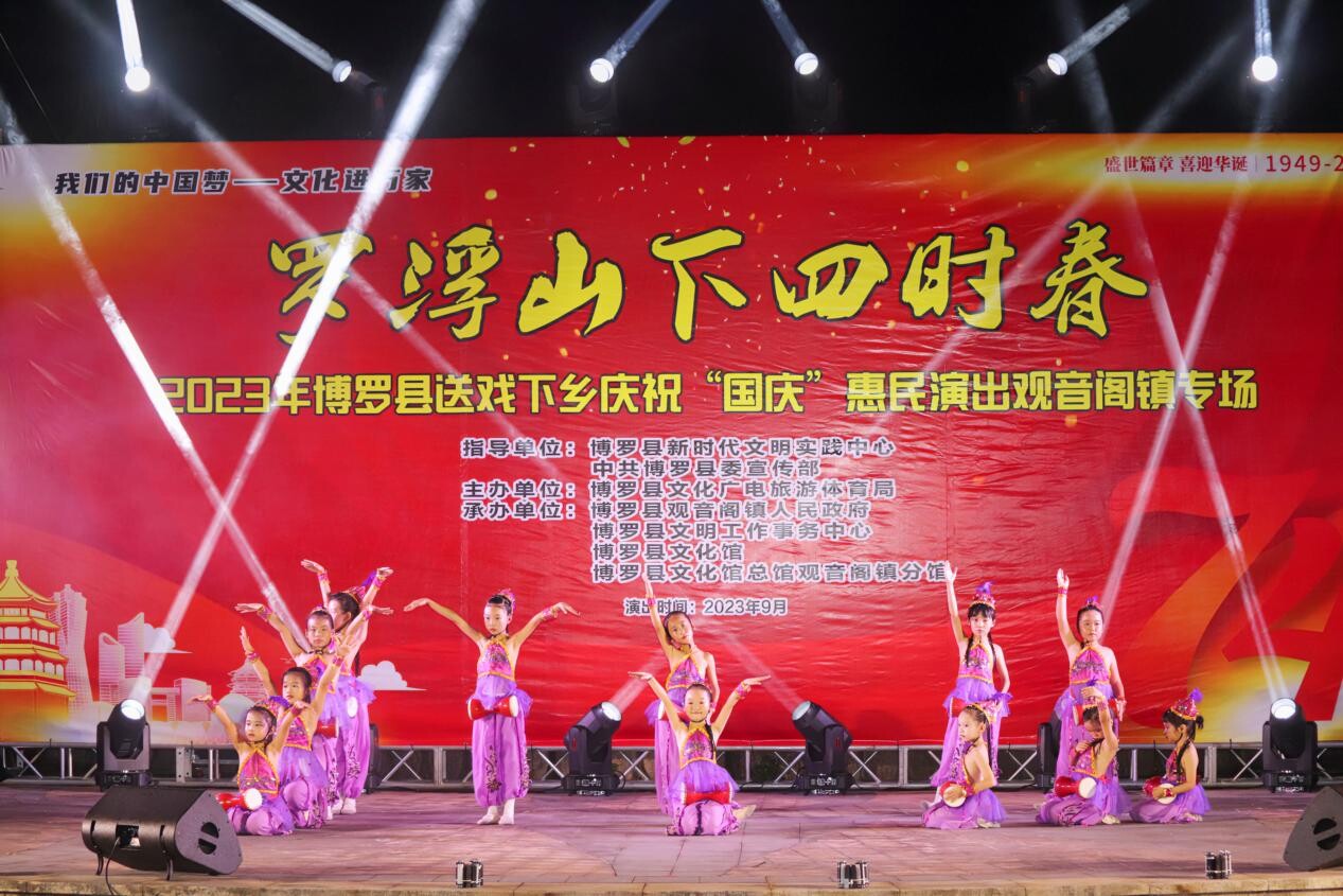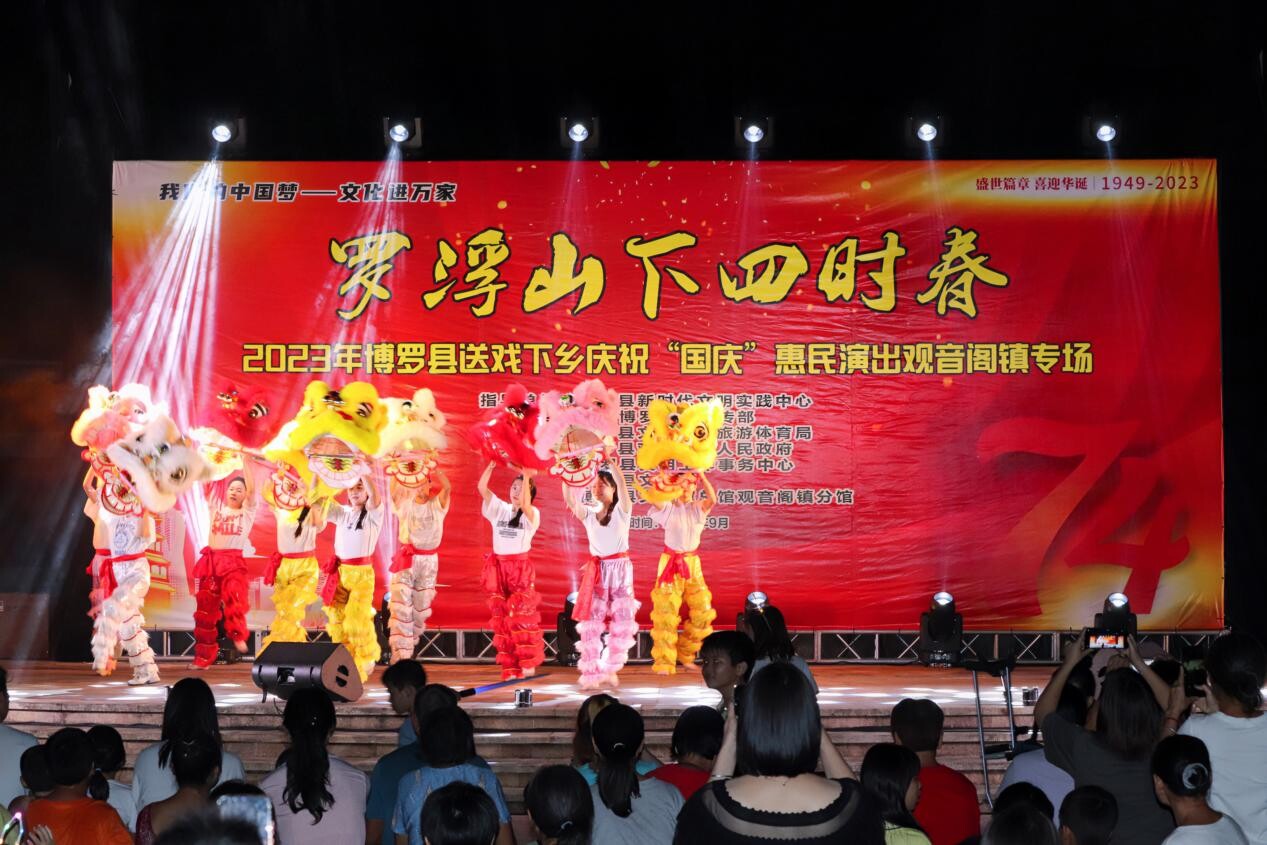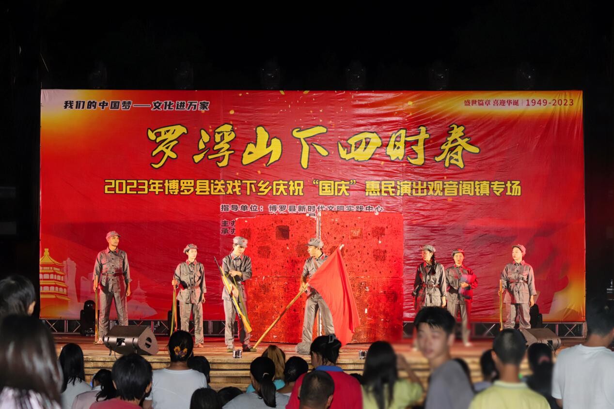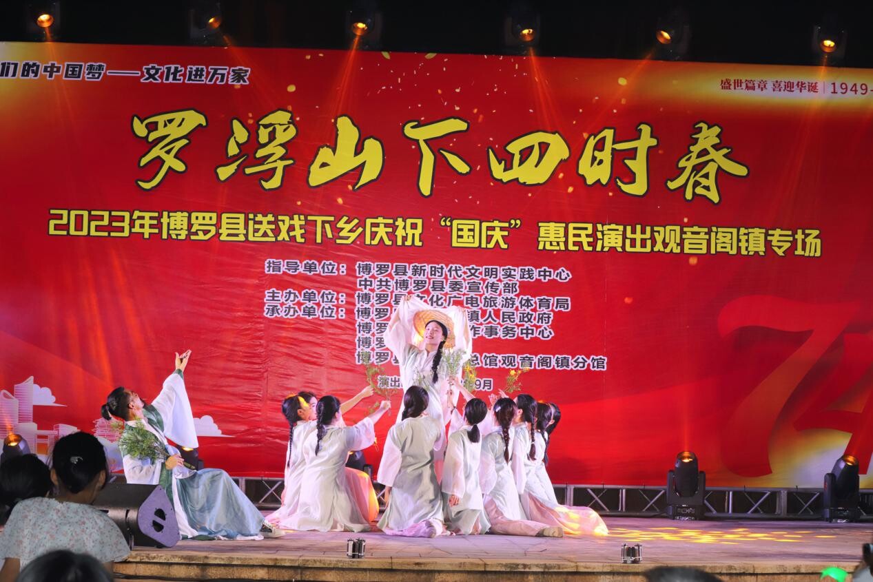 為慶祝中華人民共和國成立74周年,9月27日晚,“羅浮山下四時春”2023年博羅縣送戲下鄉(xiāng)慶?!皣鴳c”專場惠民演出,在觀音閣鎮(zhèn)文化廣場舉行。