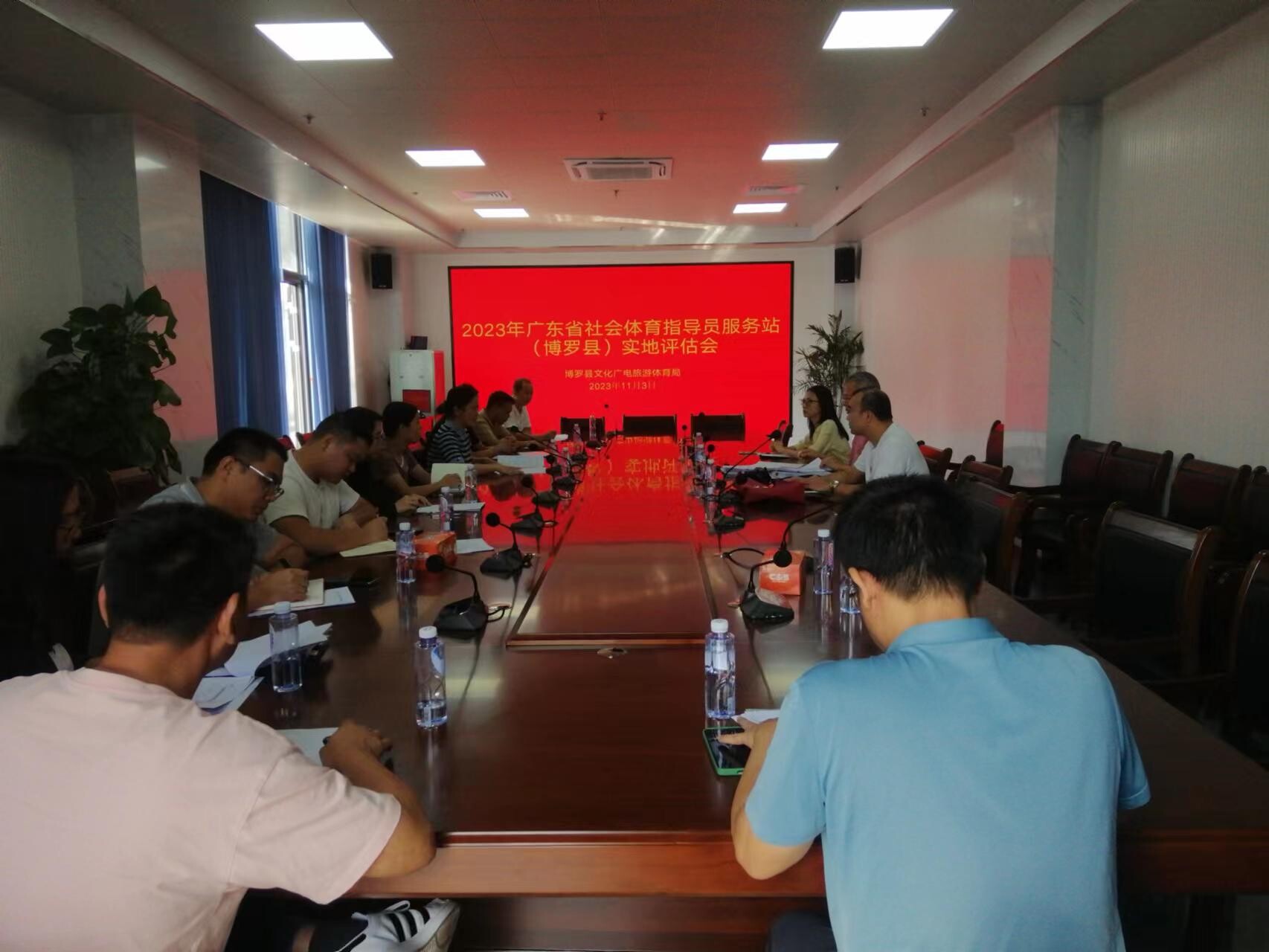 評估組一行在博羅縣文化廣電旅游體育局召開了現場評估工作會議,聽取了我縣10個參評鎮街在政策保障、經費支持、培訓活動、培訓場地建設等工作開展的自評報告。各鎮街也就目前社會體育指導員推進工作遇到的挑戰和困難、社會體育指導員的隊伍發展與上崗率、社會體育指導員服務站規范化管理等方面與專家組進行了研討交流。