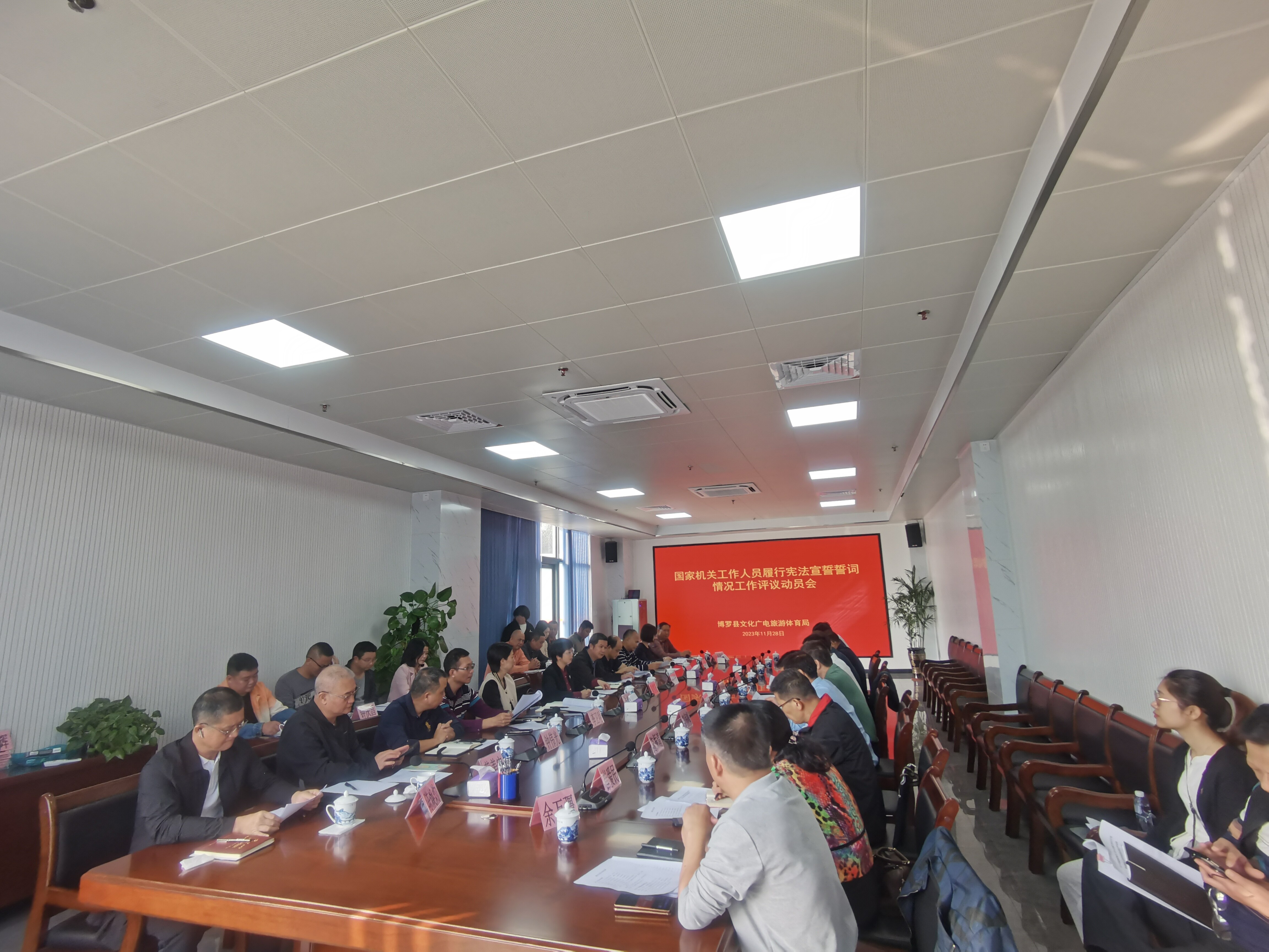11月28日,縣人大常委會評議調查組赴文化廣電旅游體育局指導開展國家機關工作人員履行憲法宣誓誓詞情況工作評議動員會??h人大常委會委員、教僑工委主任吳志東主持會議,縣人大常委會副主任鄧東方作動員講話,縣文化廣電旅游體育局局長陳雪花發言。副局長何慶年,副局長盧瀚春等同志參加會議。