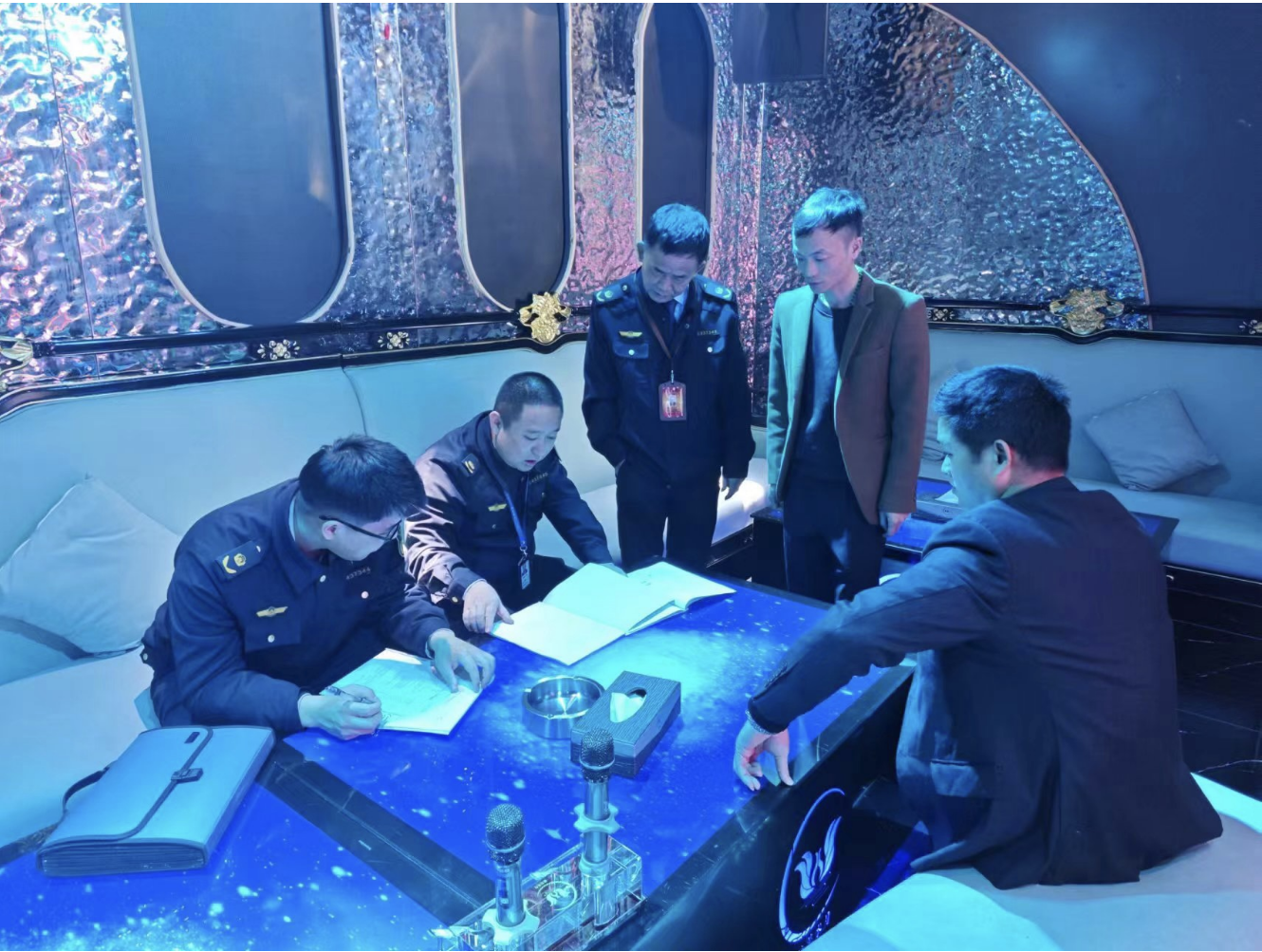 12月27日,市場(chǎng)管理股工作人員前往石灣鎮(zhèn)對(duì)3家KTV開展歌舞娛樂場(chǎng)所經(jīng)營(yíng)秩序檢查工作。