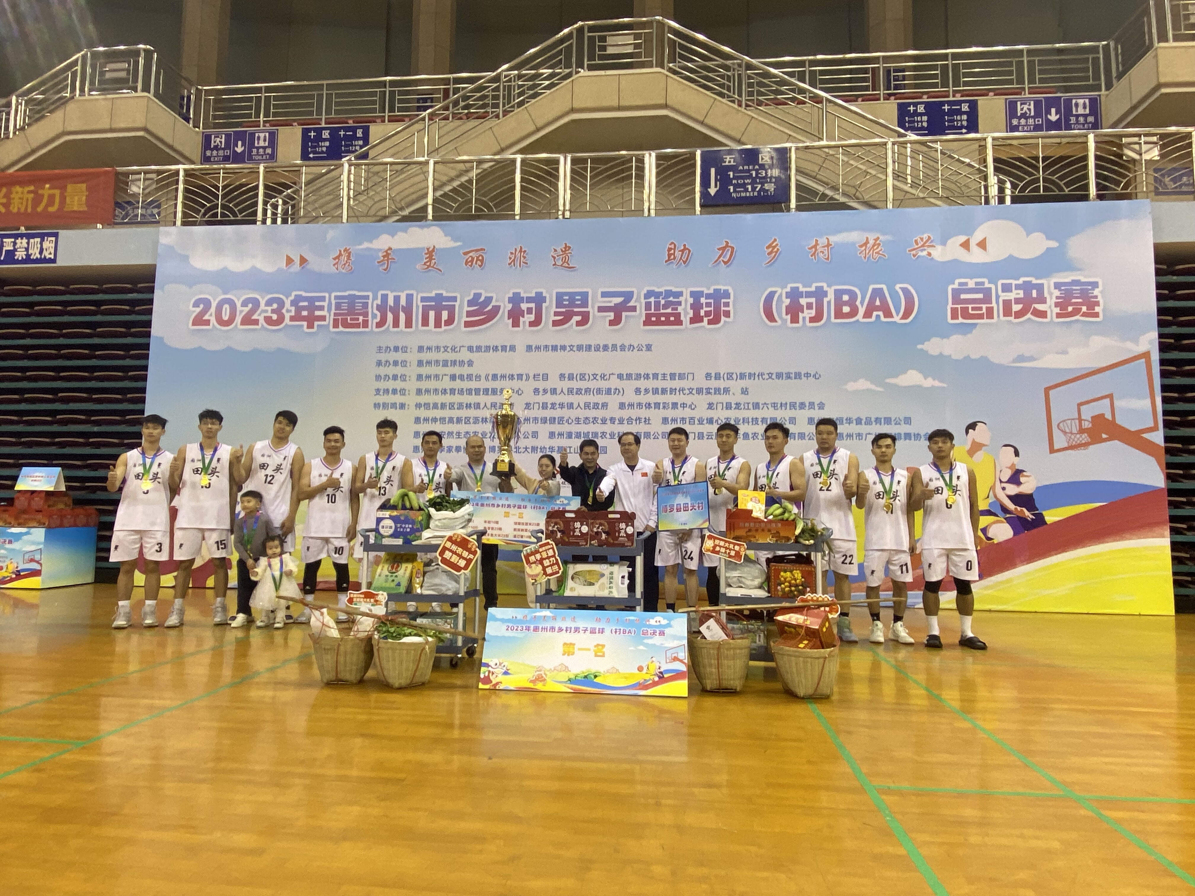 1月3日晚,“攜手美麗非遺,助力鄉村振興”惠州市鄉村男子籃球(村BA)總決賽在惠州市江北體育館圓滿落幕。我縣園洲鎮田頭村、龍溪街道埔上村、湖鎮鎮新圍村代表隊進入總決賽前六名,成績婓然。最終,博羅縣園洲鎮田頭村代表隊以大比分優勢勇奪桂冠,博羅縣龍溪街道埔上村代表隊獲得第三名、湖鎮鎮新圍村獲得第六名。