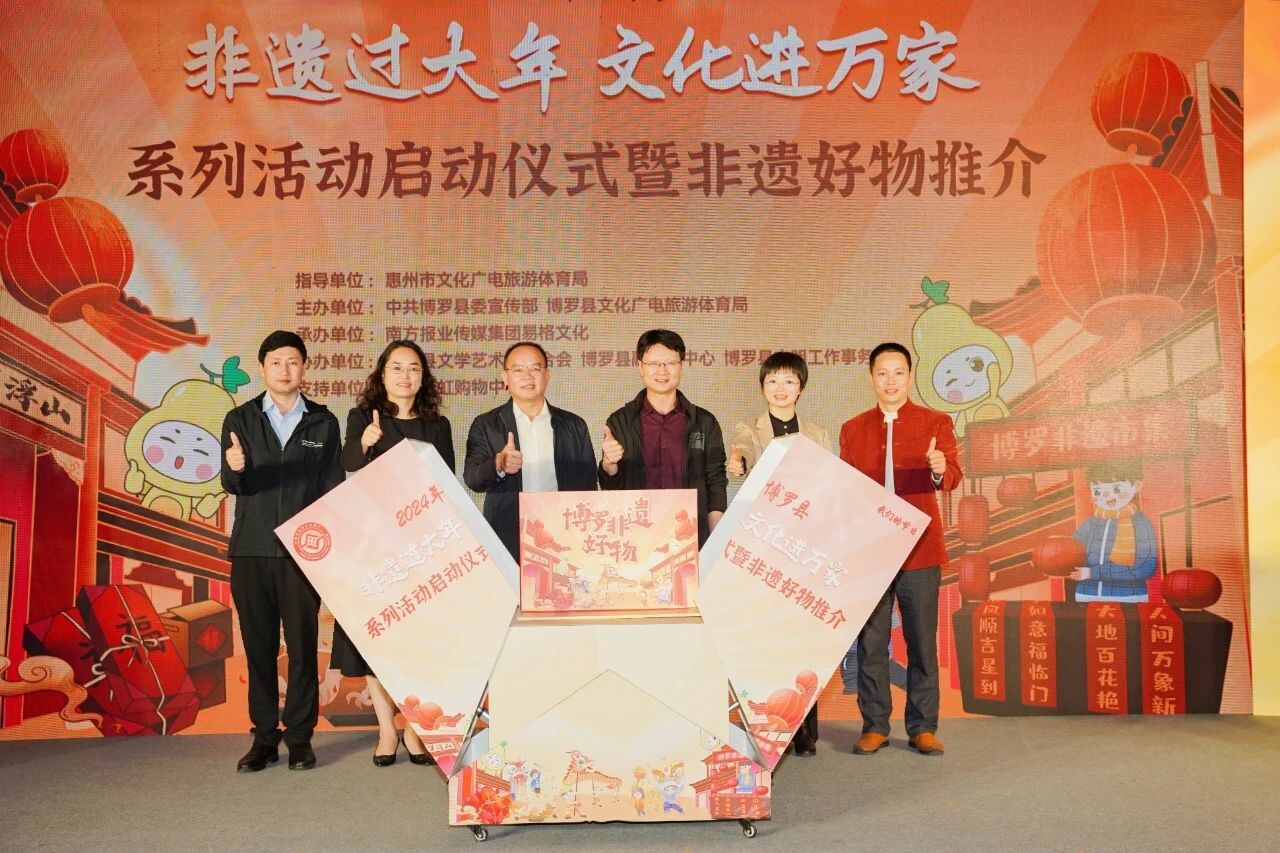 1月20日,由惠州市文化廣電旅游體育局指導,中共博羅縣委宣傳部、博羅縣文化廣電旅游體育局主辦的博羅縣2024年“非遺過大年?文化進萬家”系列活動啟動儀式暨非遺好物推介在博羅天虹購物中心順利舉行。此次活動激發了中華優秀傳統文化的生機與活力,推動非物質文化遺產在當代實踐中實現創造性轉化、創新性發展,讓非遺走進千家萬戶,豐富了群眾的節日文化生活。