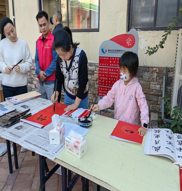 1月19日,博羅縣文化廣電旅游體育局聯合羅陽街道曙光社區邀請我縣翰臨閣書畫苑書法老師聶榮旺、邱小龍等人齊聚社區開展“墨香迎新?春聯送福”文化惠民志愿活動,將濃濃的年味和新春祝福送給居民朋友們。