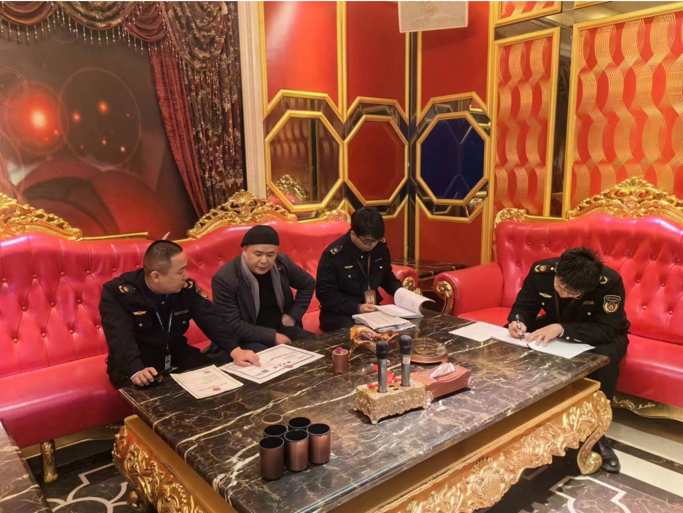 1月23日,市場(chǎng)管理股工作人員前往羅陽(yáng)街道對(duì)6家KTV場(chǎng)所開(kāi)展文化市場(chǎng)“夜查”工作。