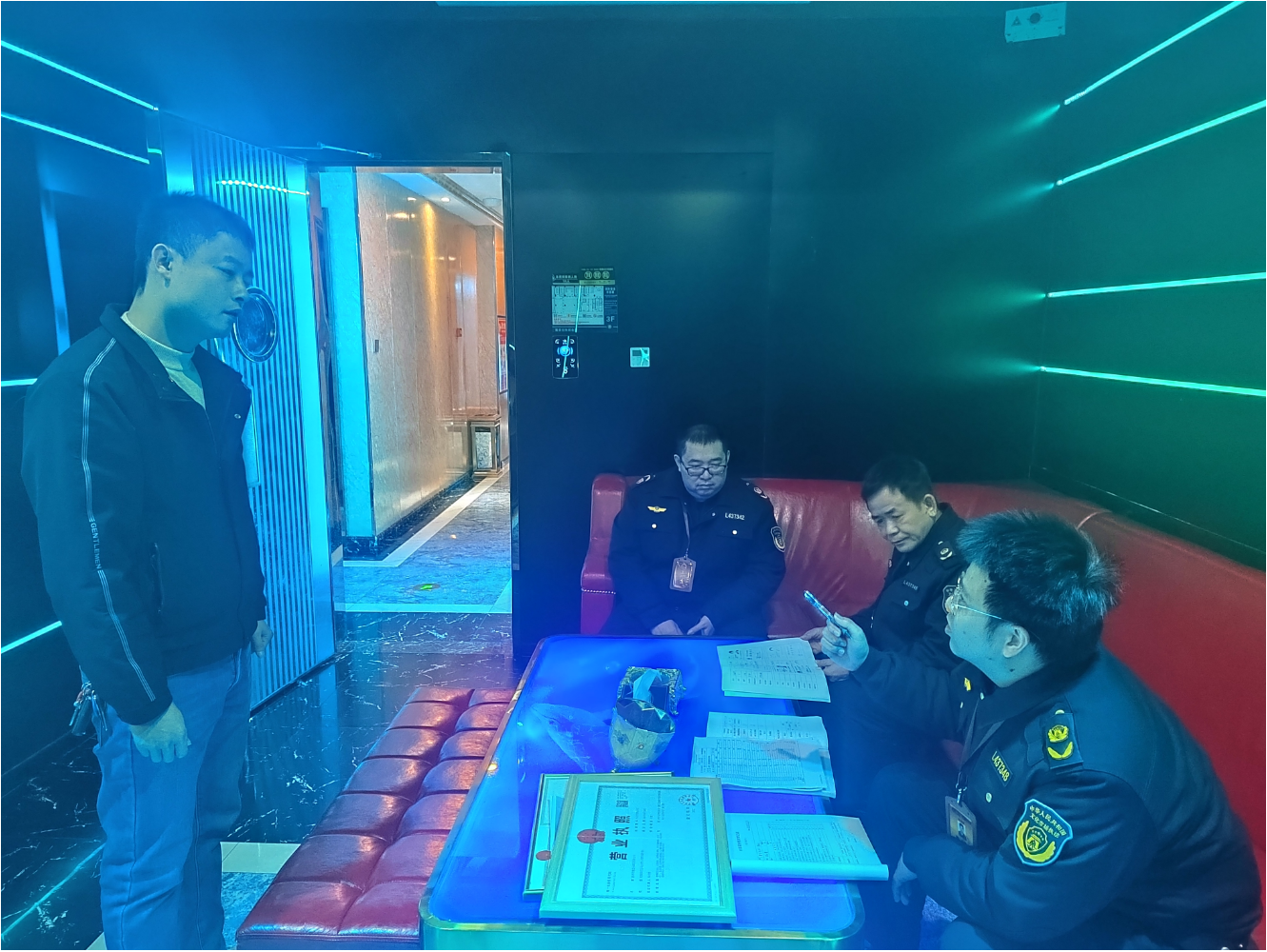 1月25日,市場(chǎng)管理股工作人員前往羅陽(yáng)街道對(duì)6家KTV、1家營(yíng)業(yè)性演出場(chǎng)所開(kāi)展文化市場(chǎng)“夜查”工作。