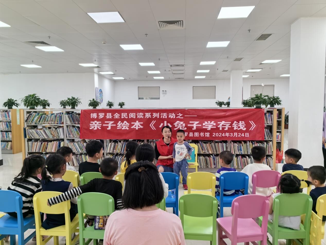 3月24日,博羅縣圖書(shū)館在該館一樓少兒閱覽室開(kāi)展全民閱讀系列活動(dòng)——親子繪本《小兔子學(xué)存錢(qián)》。