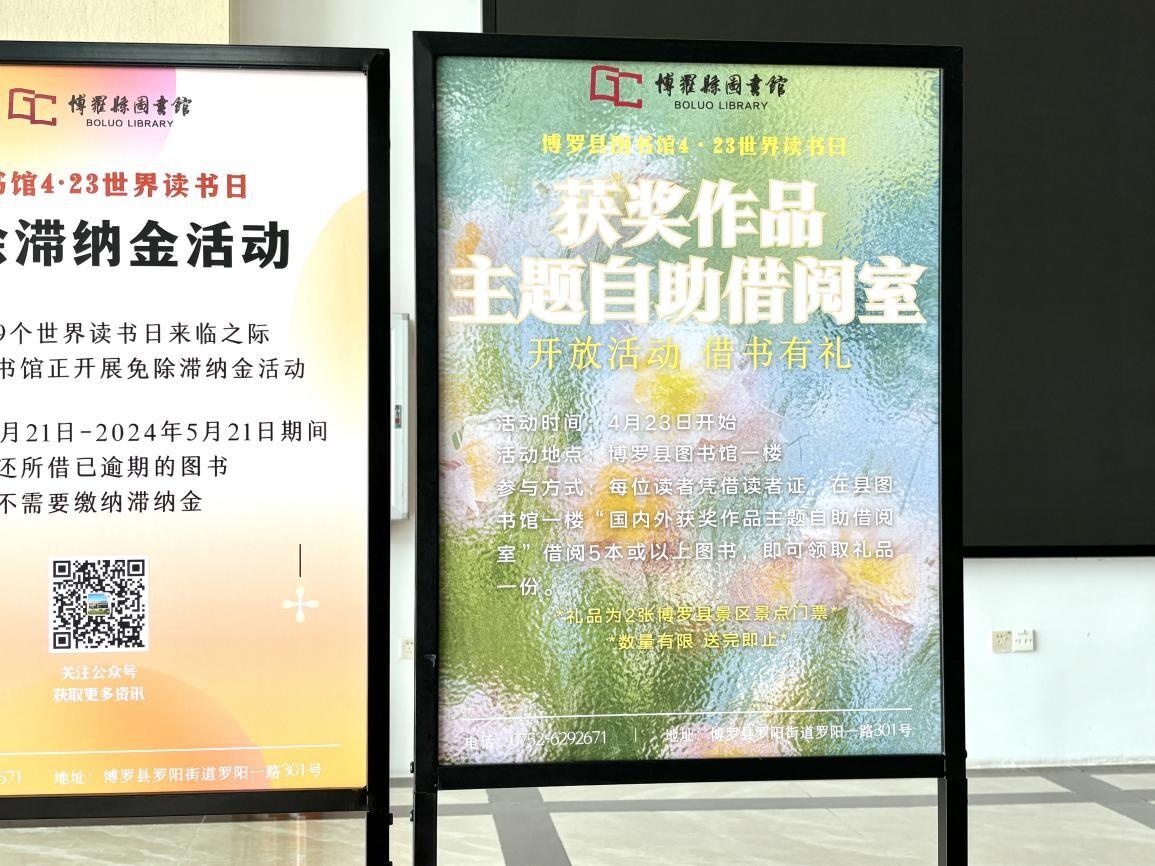 人間最美四月天,正是讀書好時節。在第29個“世界讀書日”來臨之際,博羅縣圖書館依托館藏資源以及新開放的館舍空間,開展了“4·23世界讀書日”獲獎作品主題自助借閱室開放活動。