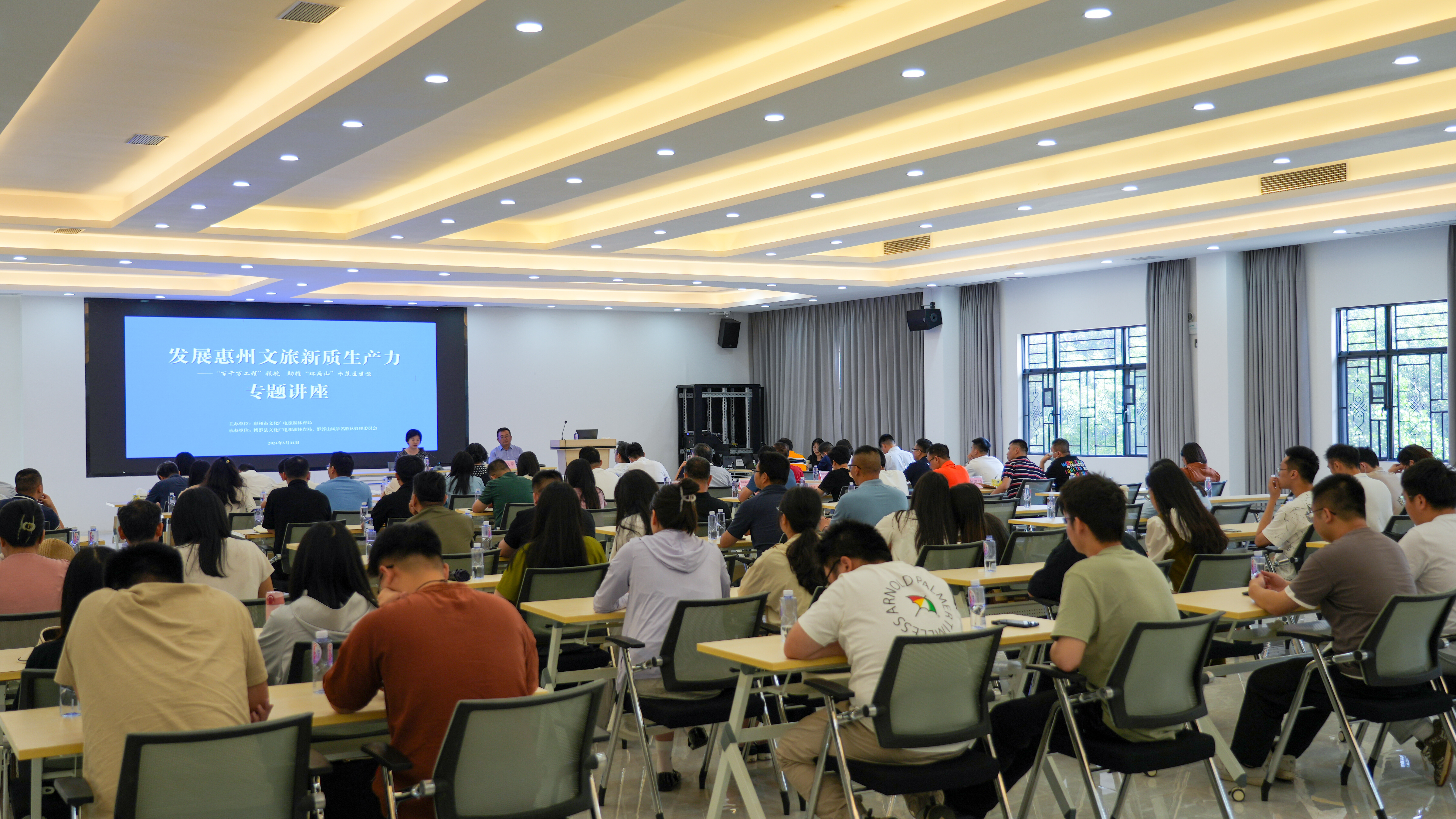 5月14日下午,由市文化廣電旅游體育局主辦,博羅縣文化廣電旅游體育局、羅浮山管委會承辦的《發(fā)展惠州文旅新質(zhì)生產(chǎn)力“百千萬工程”領(lǐng)航助推“環(huán)兩山”示范區(qū)建設(shè)》專題講座在羅浮山舉辦。講座邀請了北京大學(xué)博士生導(dǎo)師,文化和旅游部“十三五”“十四五”規(guī)劃專家委員會委員、中國旅游改革發(fā)展咨詢委員會專家委員竇文章教授主講。我局35周歲以下的年輕干部及中層以上的領(lǐng)導(dǎo)干部50多人參加學(xué)習(xí)。