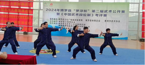 5月19日,由博羅縣文化廣電旅游體育局、縣體育總會、惠州市武術協會指導,博羅縣太極拳協會主辦的2024年博羅縣“羅浮杯”第二屆武術公開賽暨中國武術段位制考評賽,在博羅縣體育中心籃球館副館隆重舉行。共有來自惠州、東莞、深圳各地的120余名選手參賽。