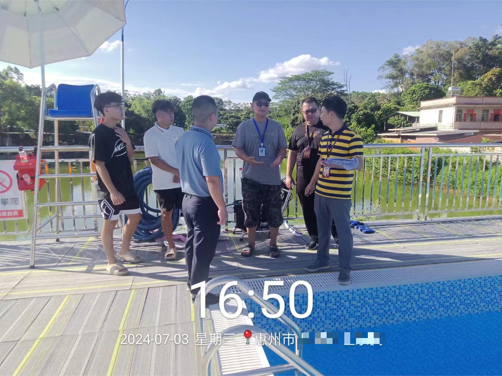 7月4日,執法大隊工作人員前往長寧鎮和湖鎮鎮,開展2024年高危險性體育項目經營活動場所(游泳池)安全生產專項檢查工作和民宿日常檢查,檢查了2家游泳池、1家民宿。