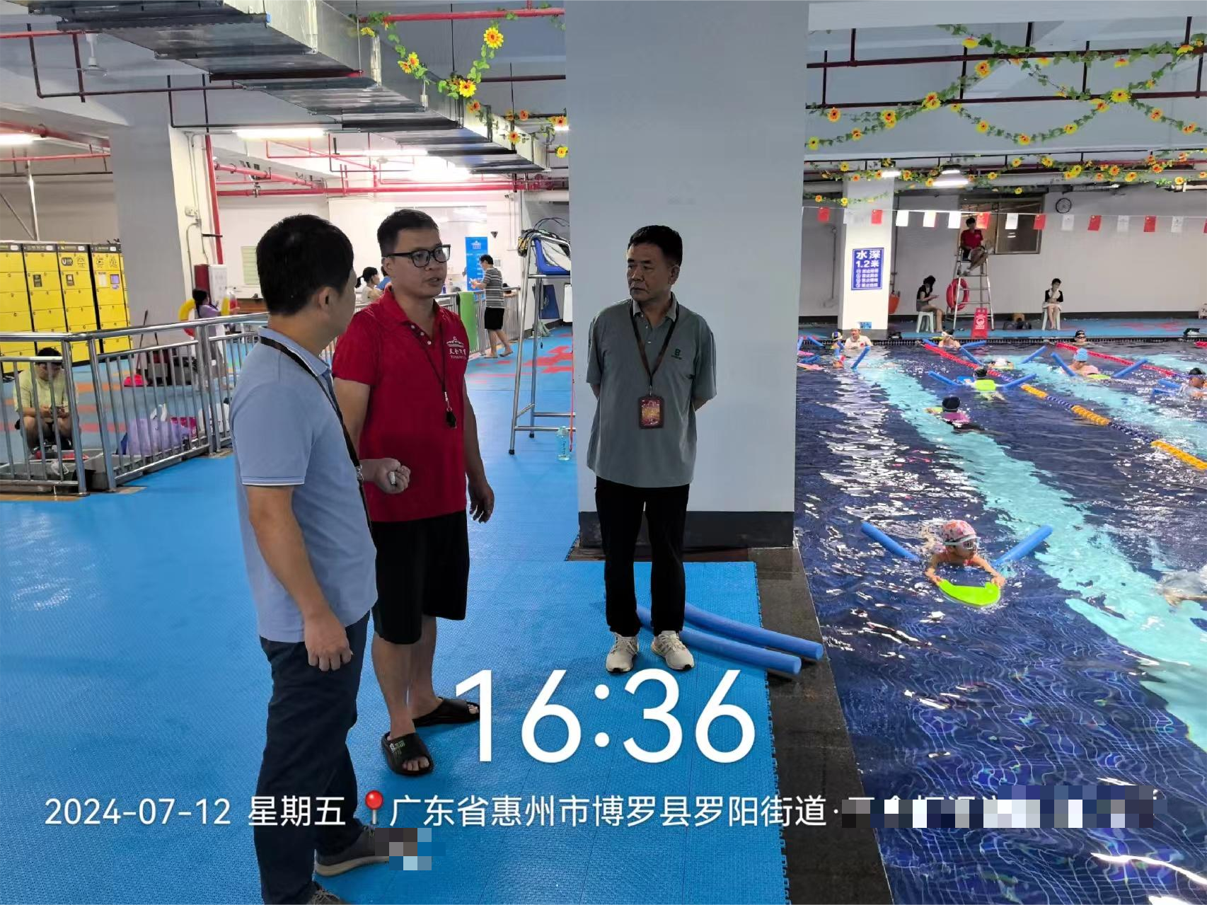 7月12日,市場管理股工作人員前往羅陽街道,開展2024年博羅縣高危險性體育項目經營活動場所(游泳池)安全生產專項檢查工作。共檢查4家游泳池,發現問題隱患5處,工作人員現場責令其限期整改。