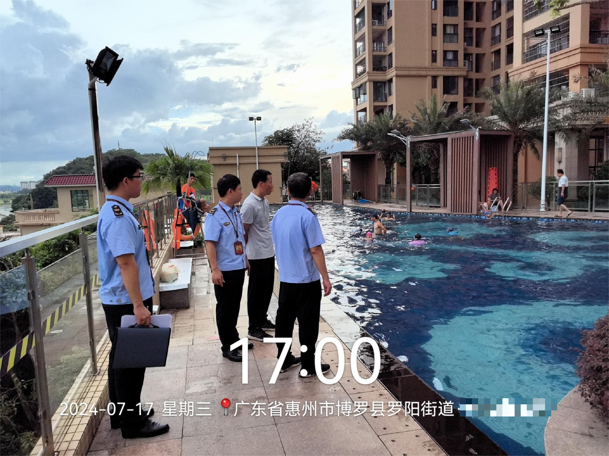 7月17日,市場管理股工作人員前往羅陽街道,開展2024年博羅縣高危險性體育項目經營活動場所(游泳池)安全生產專項檢查工作。共檢查4家游泳池,發現問題隱患3處,工作人員現場責令其限期整改。