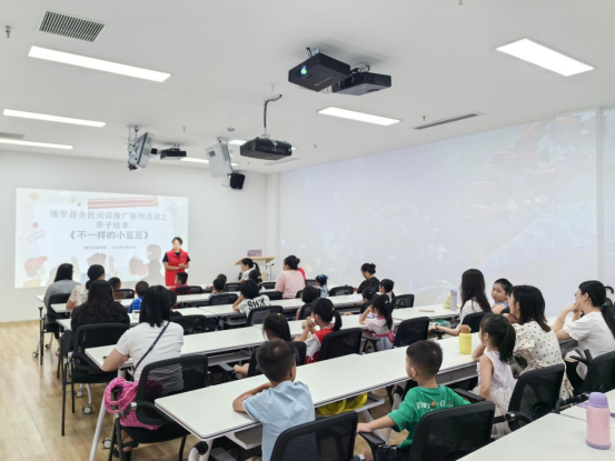 7月28日,博羅縣圖書館在該館一樓新時代文明實(shí)踐中心開展2024南國書香節(jié)系列活動:全民閱讀推廣系列活動之親子繪本《不一樣的小豆豆》。