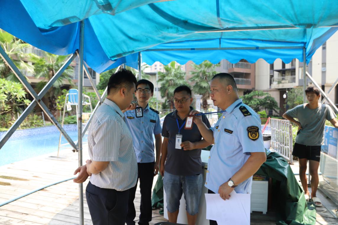8月8日,局執法大隊聯合市場管理股前往龍溪、羅陽街道,會同當地政府工作人員開展高危險性體育經營活動專項整治工作,此行共檢查了5家游泳池,檢查發現無證游泳池3家,執法人員現場開具責令整改通知書要求清場關停。