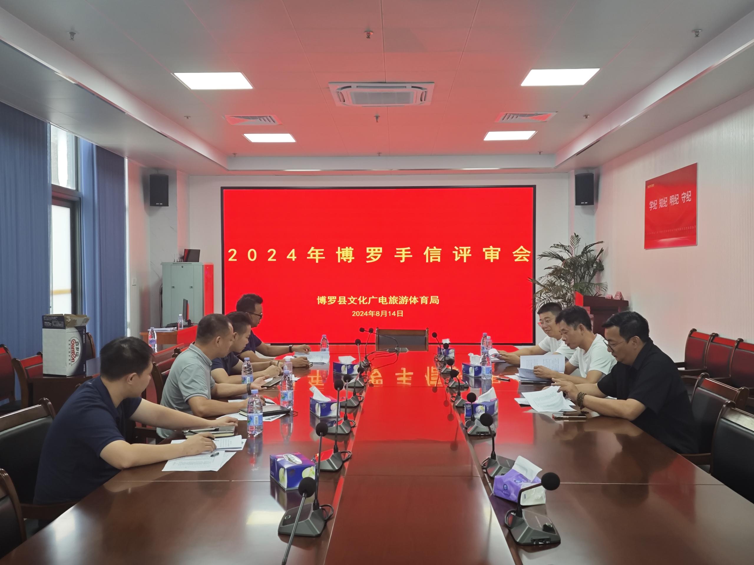 8月14日,我局召開2024年博羅手信評審會,特邀縣農業農村局、縣民政局、中國旅游景區協會、博羅縣旅游協會、博羅縣民宿協會等單位組成評審組,我局組織產業發展股干部職工參加此次會議。