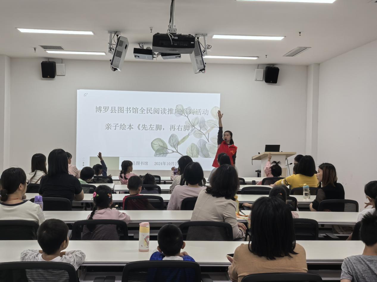 10月27日上午,博羅縣圖書館開展全民閱讀推廣系列活動(dòng)之親子繪本《先左腳,再右腳》,共有20組親子家庭參加。