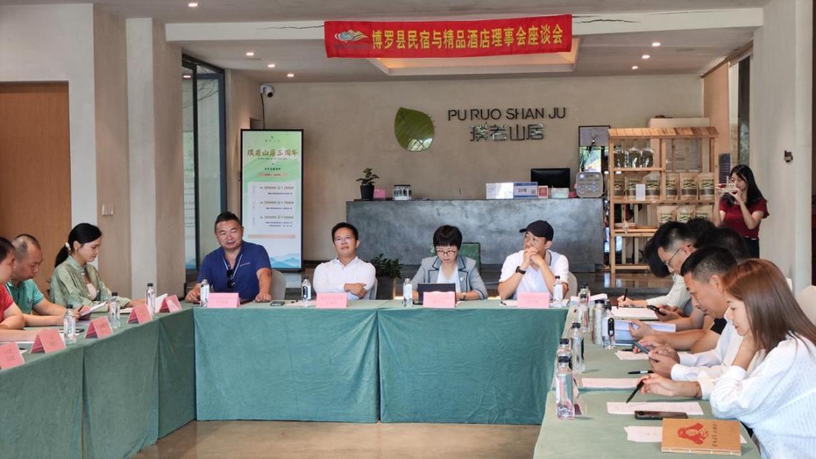 11月6日,在璞若山居召開了博羅縣民宿與精品酒店協會理事單位工作座談會,縣委常委、副縣長吳德海、博羅縣文化廣電旅游體育局黨組書記、局長陳雪花與各民宿單位代表就推動鄉村酒店和鄉村民宿的發展開展交談,我局三級主任科員沈文芳及產業發展股工作人員參加。