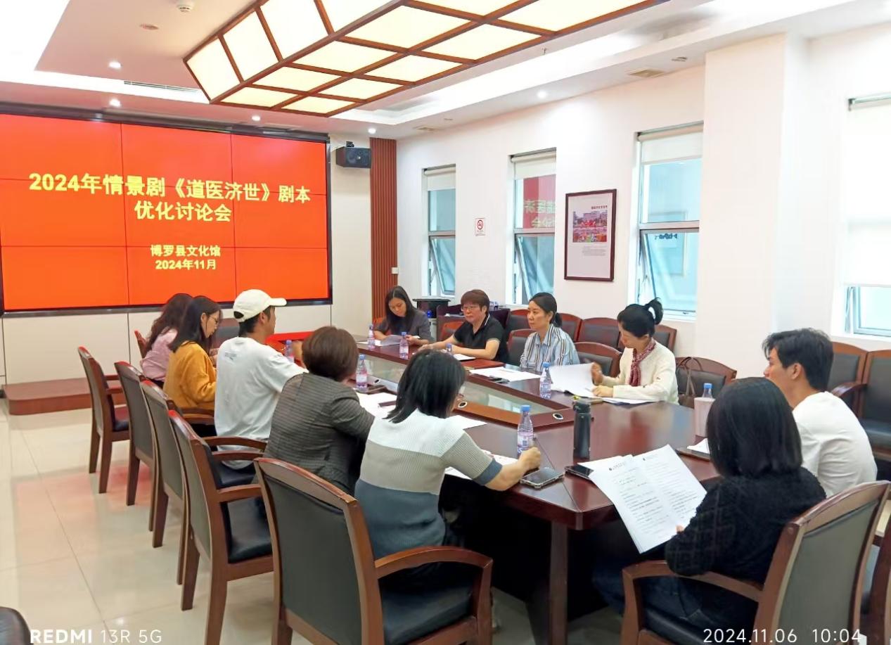 11月6日,盧瀚春副局長在縣文化館會議室召開博羅縣文化館藝術創作會議,會議主題為2024年情景劇《道醫濟世》劇本優化討論會。