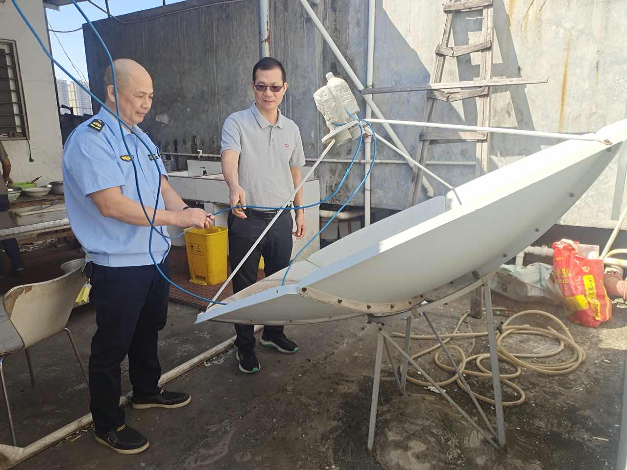 11月7日,我局黨組成員、三級主任科員李衛明同志帶領執法大隊相關工作人員前往園洲鎮,聯合當地政府、廣電部門開展非法地面衛星接收設施專項整治及文旅市場安全檢查工作,此行共檢查了1家酒店、3家印刷企業、2家五金店。其中檢查發現個別場所有非法地面衛星接收設備,執法人員現場責令拆除,并立案調查處理。