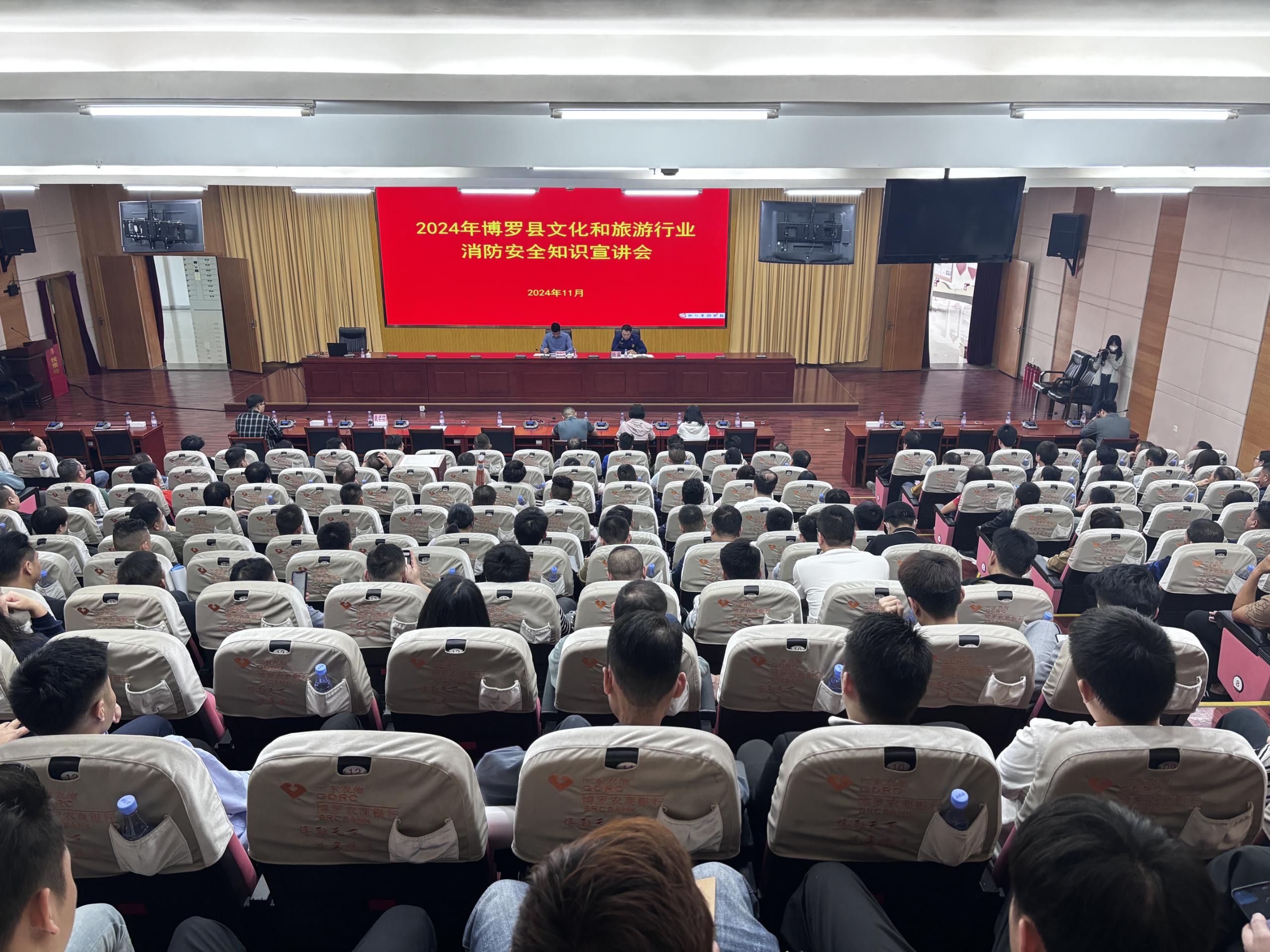 11月19日下午,博羅縣文化廣電旅游體育局在文化中心多功能會議室召開“2024年博羅縣文化和旅游行業消防安全培訓會”。局各業務股室(隊)、事業單位相關工作人員及全縣文旅行業負責人共200余人參加會議。會議由局黨組成員、副局長謝文山主持。