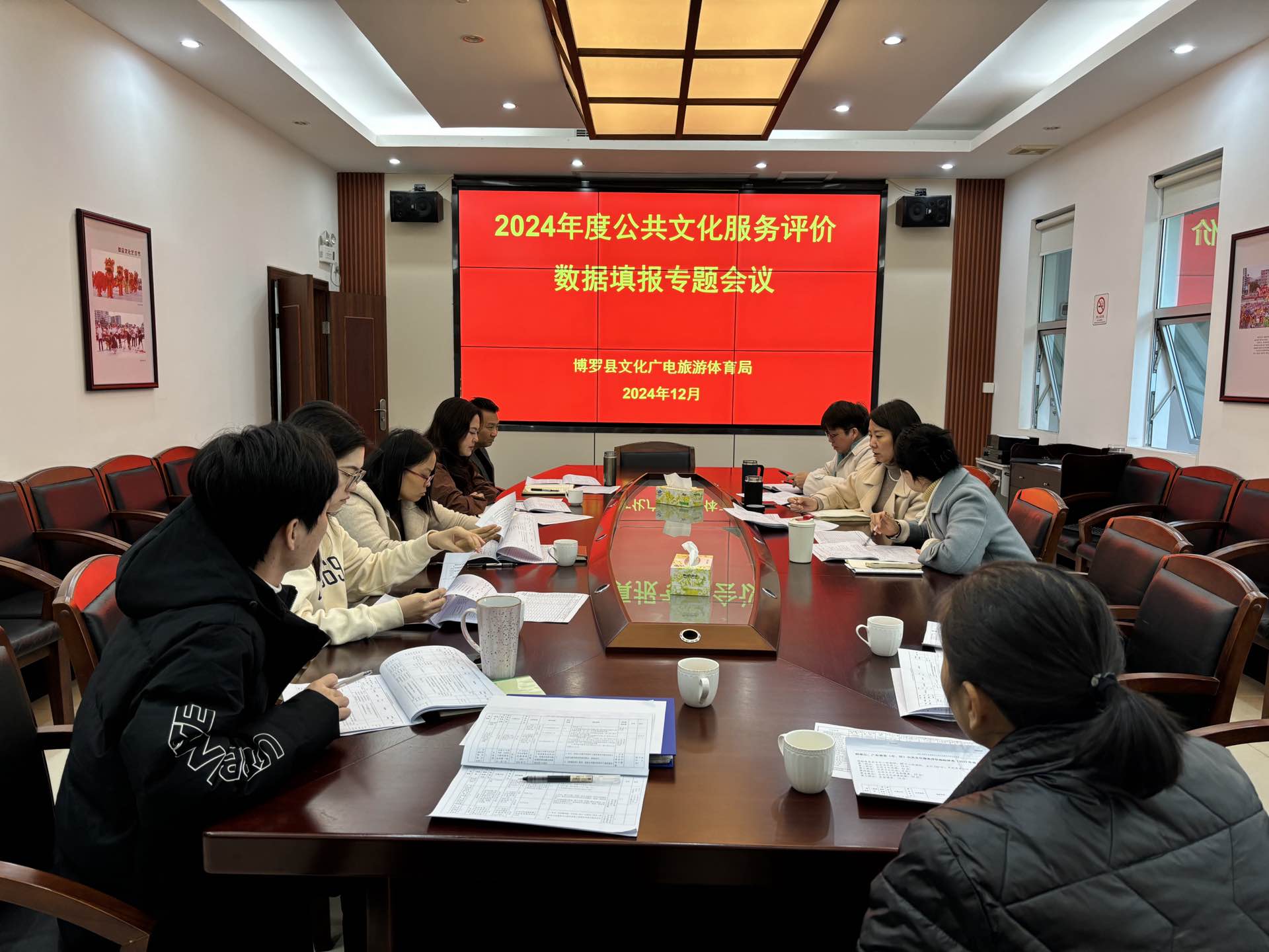 12月16日,我局黨組成員、副局長盧瀚春主持召開2024年度公共文化服務評價數據填報專題會議,文化藝術和公共服務股、文化館、圖書館相關工作人員參會。
