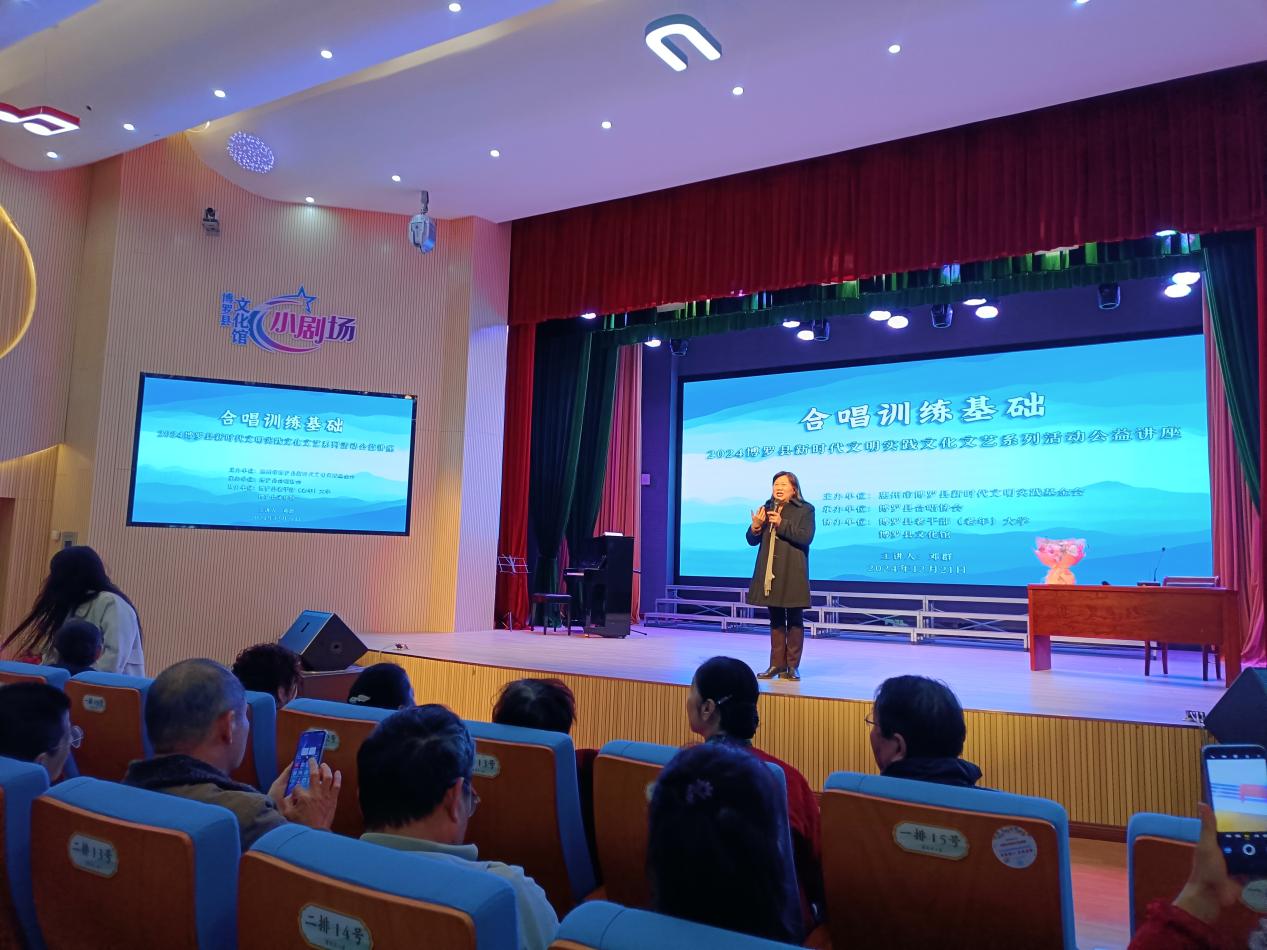 12月21日,2024博羅縣新時代文明實踐文化文藝系列活動公益講座——合唱訓練基礎在博羅縣文化館小劇場舉行。