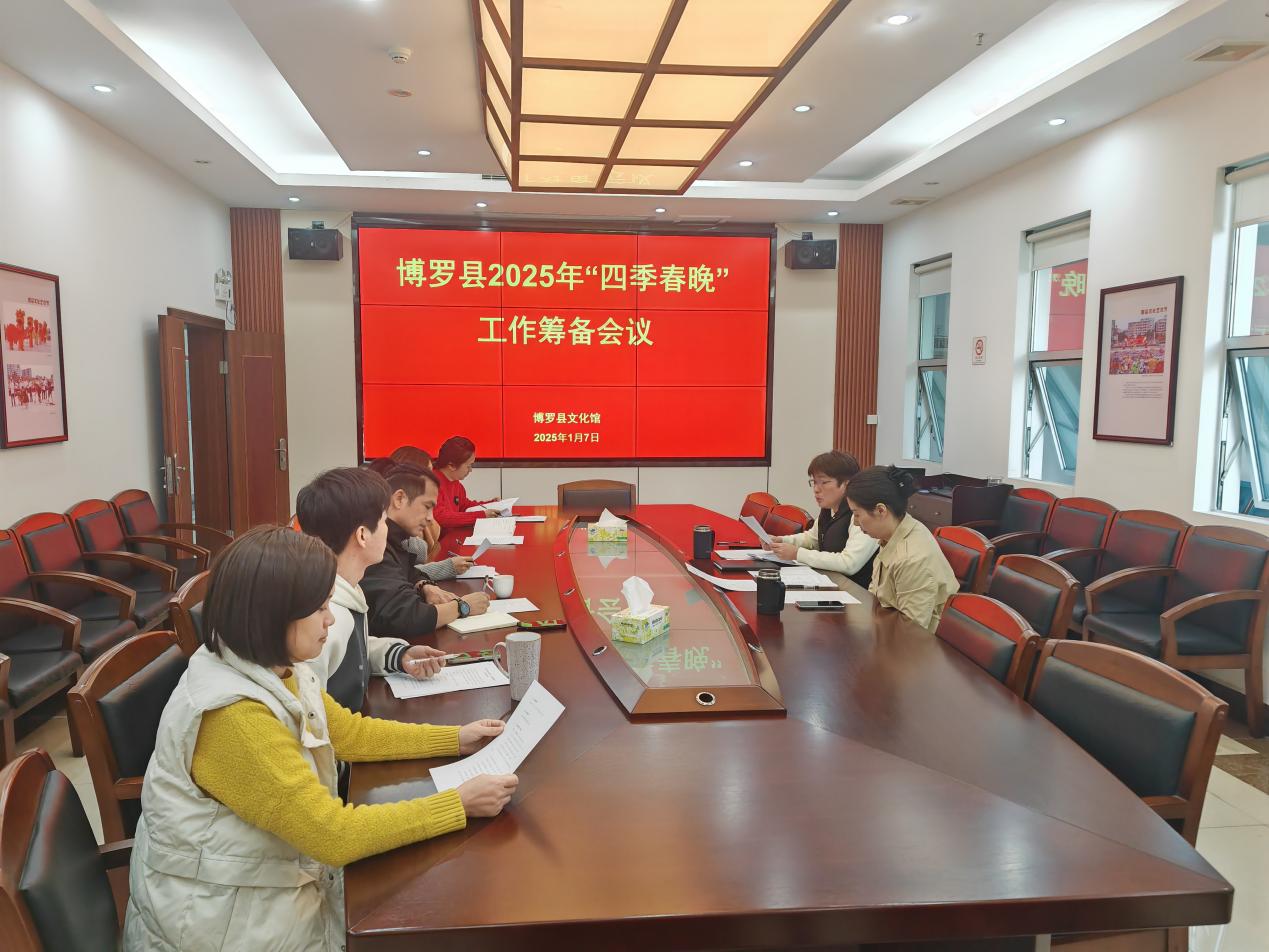 1月7日,我局黨組成員、副局長盧潮春在博羅縣文化館二樓會議室主持召開博羅縣2025年“四季春晚”工作籌備會議。博羅縣文化館及第三方公人司相關工作人員參與會議。