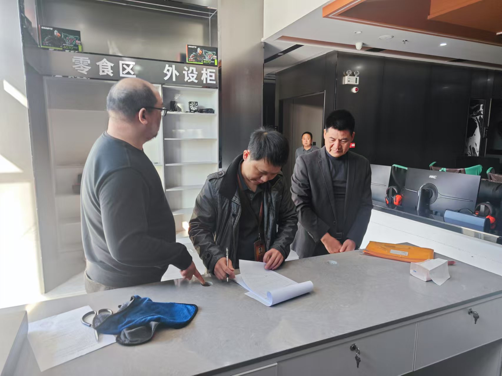 1月10日,局黨組成員、副局長謝文山帶領市場管理股工作人員前往石灣鎮,對1家網吧申請變更《網絡文化經營許可證》,1家KTV申請延續《娛樂經營許可證》,1家場所申請設立歌舞娛樂場所進行場地審核。