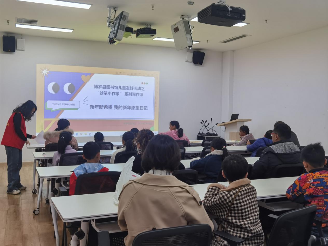 1月18日上午,博羅縣圖書館開展全民閱讀推廣系列活動:“妙筆小作家〞寫作課·第1期。共有30組親子家庭參加。