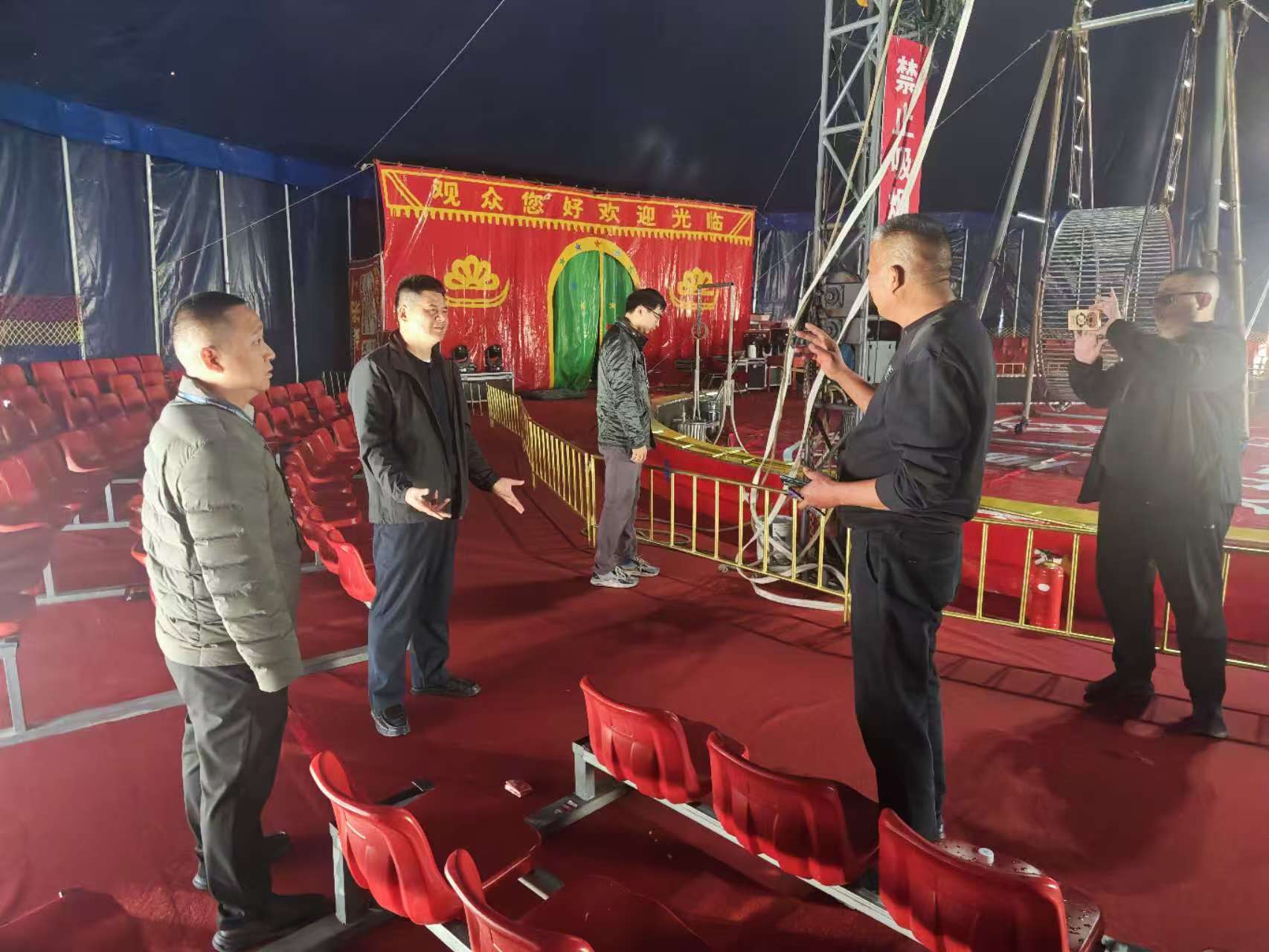?。?span lang="zh-CN">月27日,局黨組成員、副局長謝文山帶領市場管理股及執法大隊相關工作人員前往羅陽街道天虹商場馬戲團演出場所,開展演出前場地安全檢查工作。