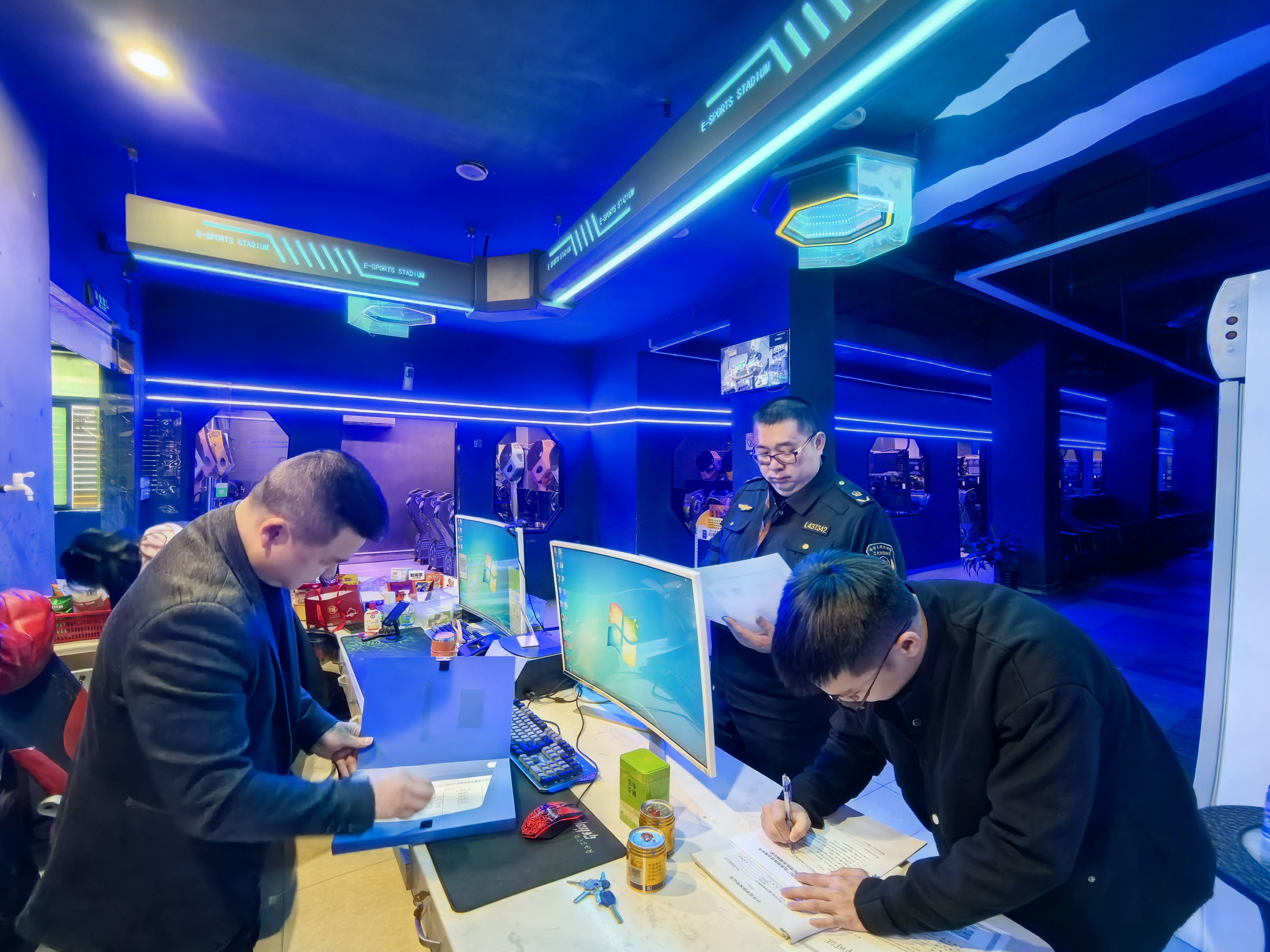 3月19日,市場管理股工作人員前往龍華鎮、長寧鎮、福田鎮,開展文旅行業拆窗破網清障專項行動,共檢查1家民宿、1家游藝娛樂場所、7家網吧。
