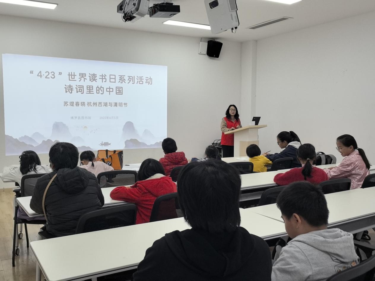 4月5日上午,博羅縣圖書館開展“4·23”世界讀書日系列活動:詩詞里的中國—蘇堤春曉,杭州西湖與清明節詩詞,共有20組親子家庭參加。
