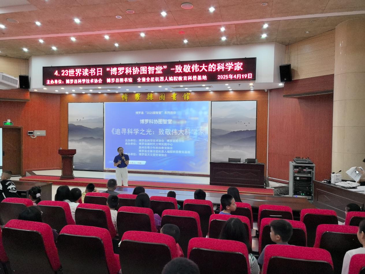 4月19日上午,博羅縣圖書館開展4·23世界讀書日“博羅科協圖智堂”一一致敬偉大的科學家 科學教育活動,共有60組親子家庭參加。