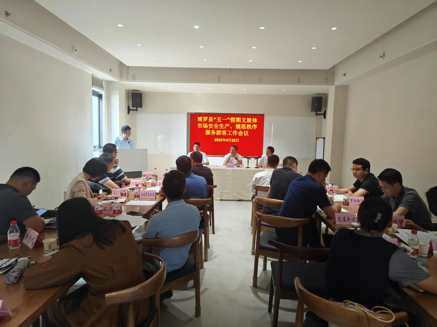 4月22日下午,博羅縣召開“五一”假期文旅體市場安全生產、規范秩序服務游客工作會議。縣委常委、副縣長吳德海,縣直、各鎮街相關負責人參加了會議。