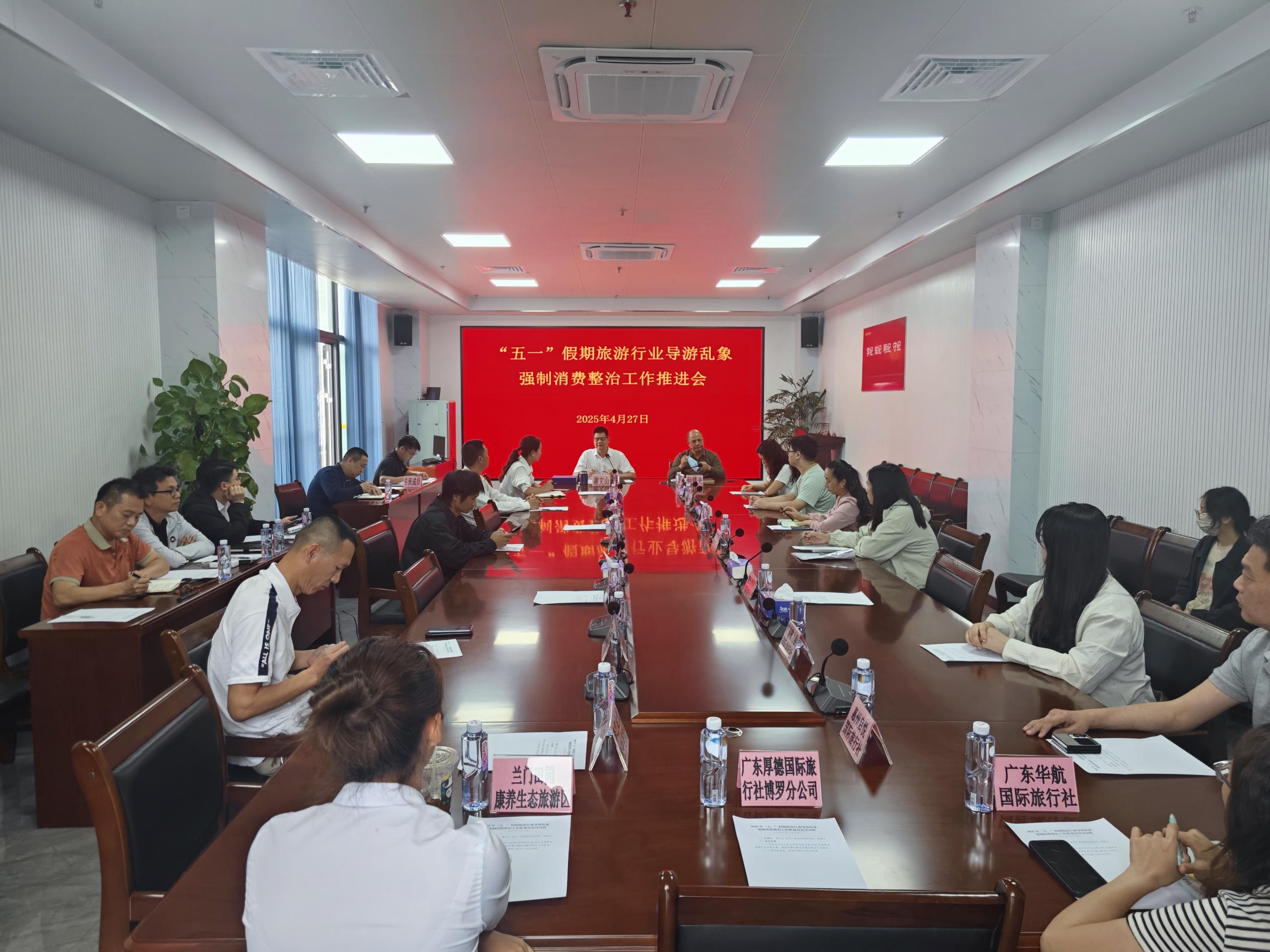 4月27日下午,縣文化廣電旅游體育局召開2025年“五一”假期旅游行業導游亂象、強制消費整治工作推進會。工作專班領導及成員、縣內各旅行社、A級景區負責人共約30人參加了會議。會議由局黨組成員、副局長謝文山主持。