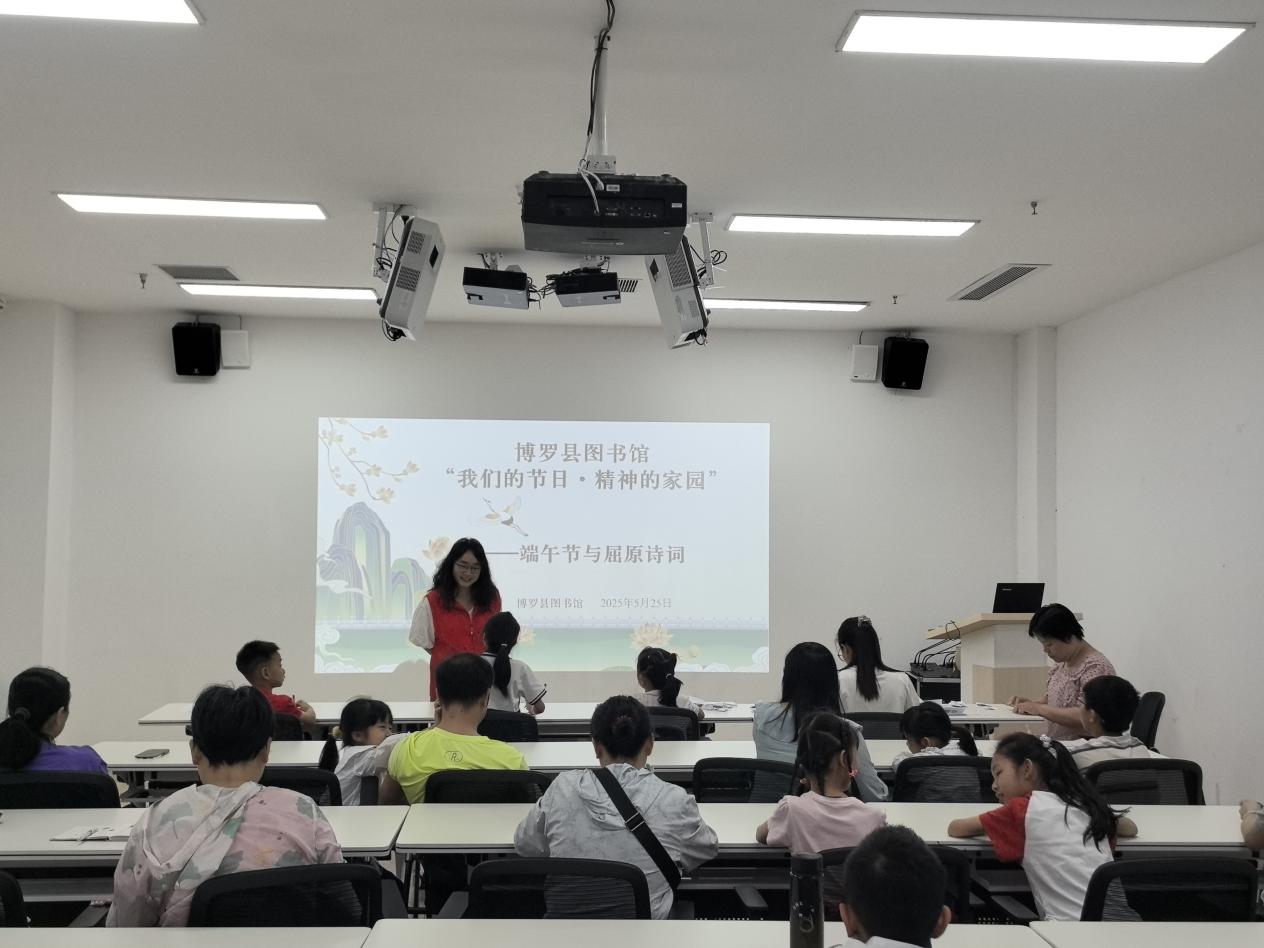 5月25日上午,博羅縣圖書館開展“我們的節(jié)日·精神的家園”—端午節(jié)與屈原詩詞。