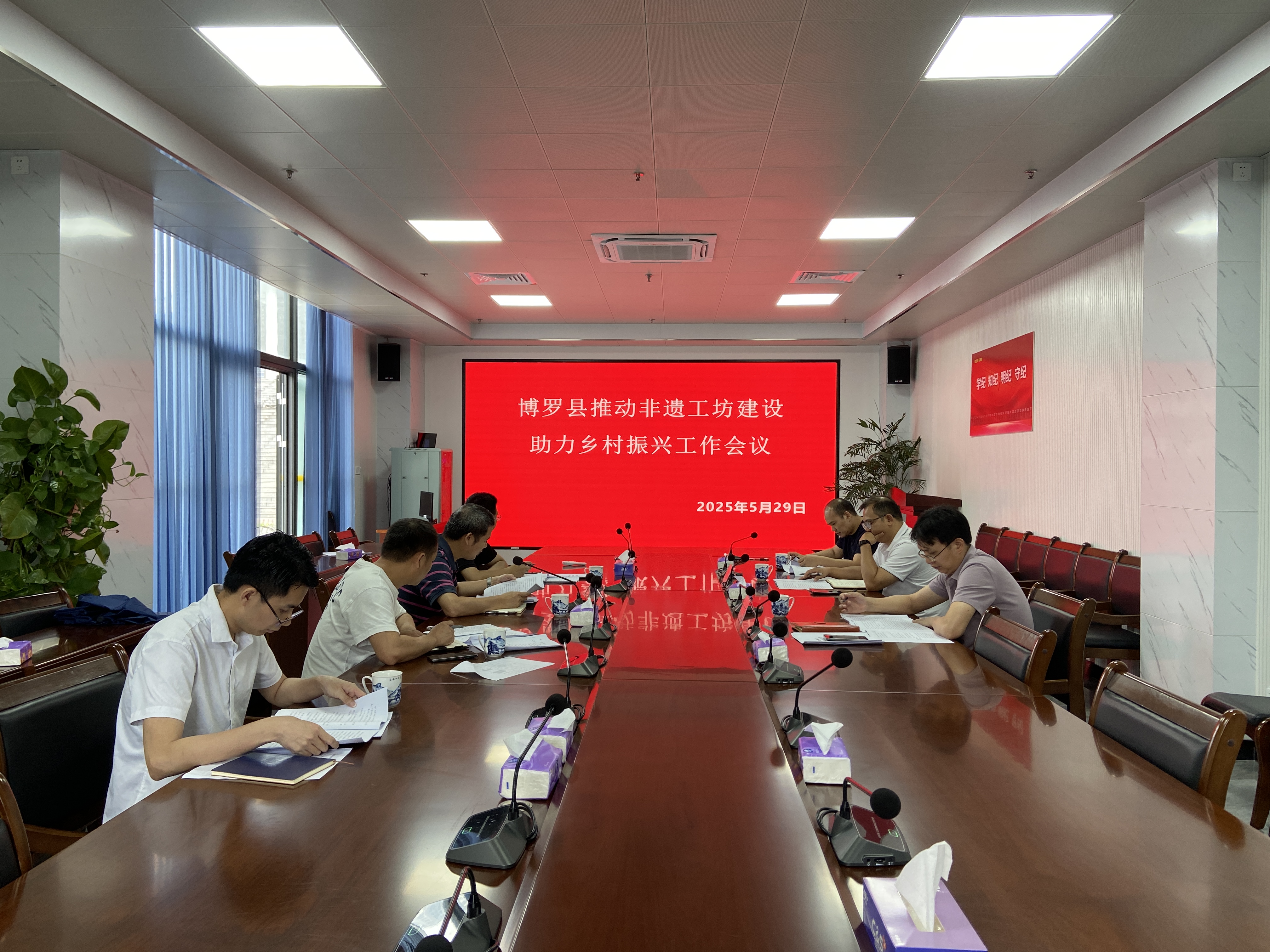 5月29日,局黨組成員、副局長何慶年在局會議室主持召開推動博羅縣非遺工坊建設助力鄉村振興工作會議,縣鄉村振興局副局長李康、縣人力資源和社會保障局以及局文化遺產保護股有關工作人員參加會議。