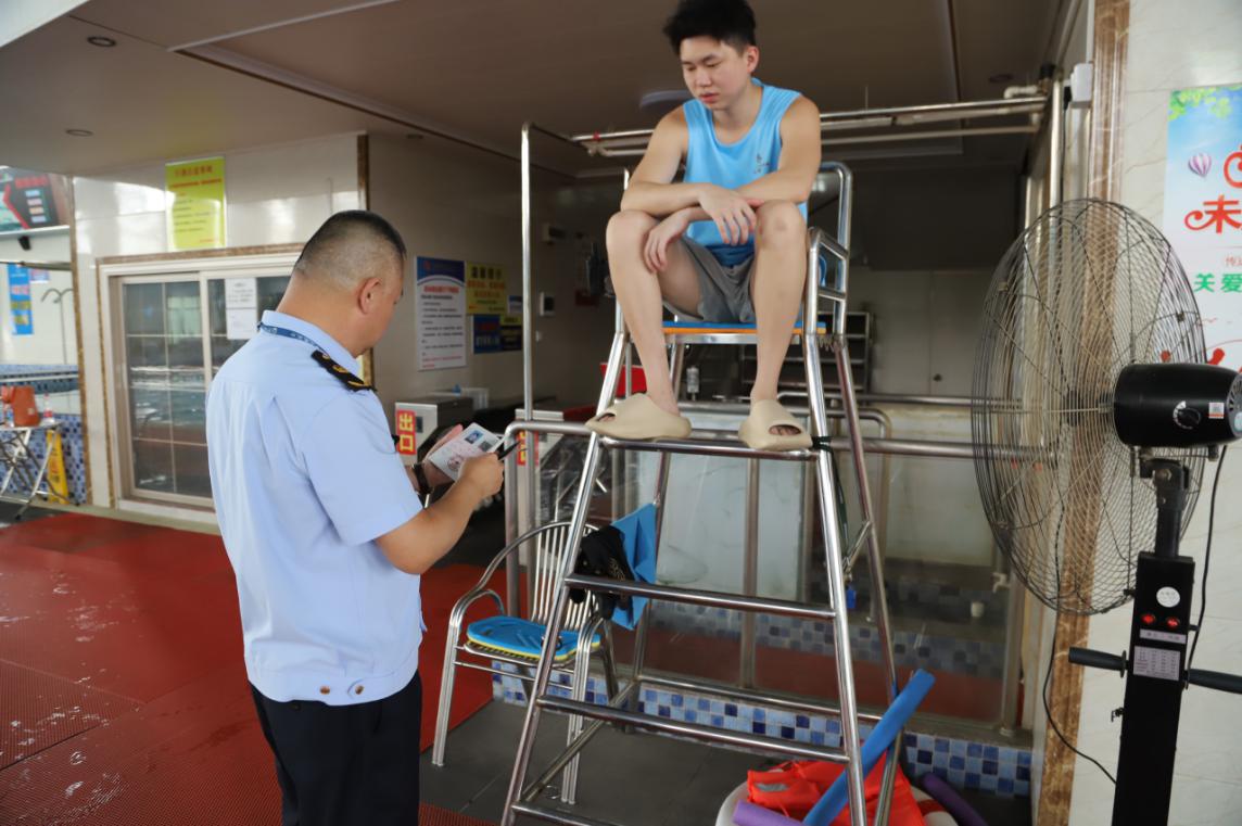 6月24日,我局產(chǎn)業(yè)發(fā)展股工作人員前往長寧鎮(zhèn)開展高危險性體育項目(游泳)安全生產(chǎn)專項檢查。重點檢查泳池設(shè)備配備、救生員等人員到崗及制度措施臺賬完善情況 。