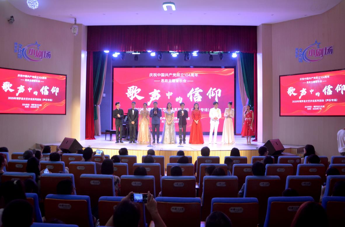 7月5日,慶祝中國共產(chǎn)黨成立104周年思政主題音樂會“歌聲中的信仰”2025年博羅縣文化館藝術(shù)沙龍活動(聲樂專場)在縣文化館小劇場舉辦。