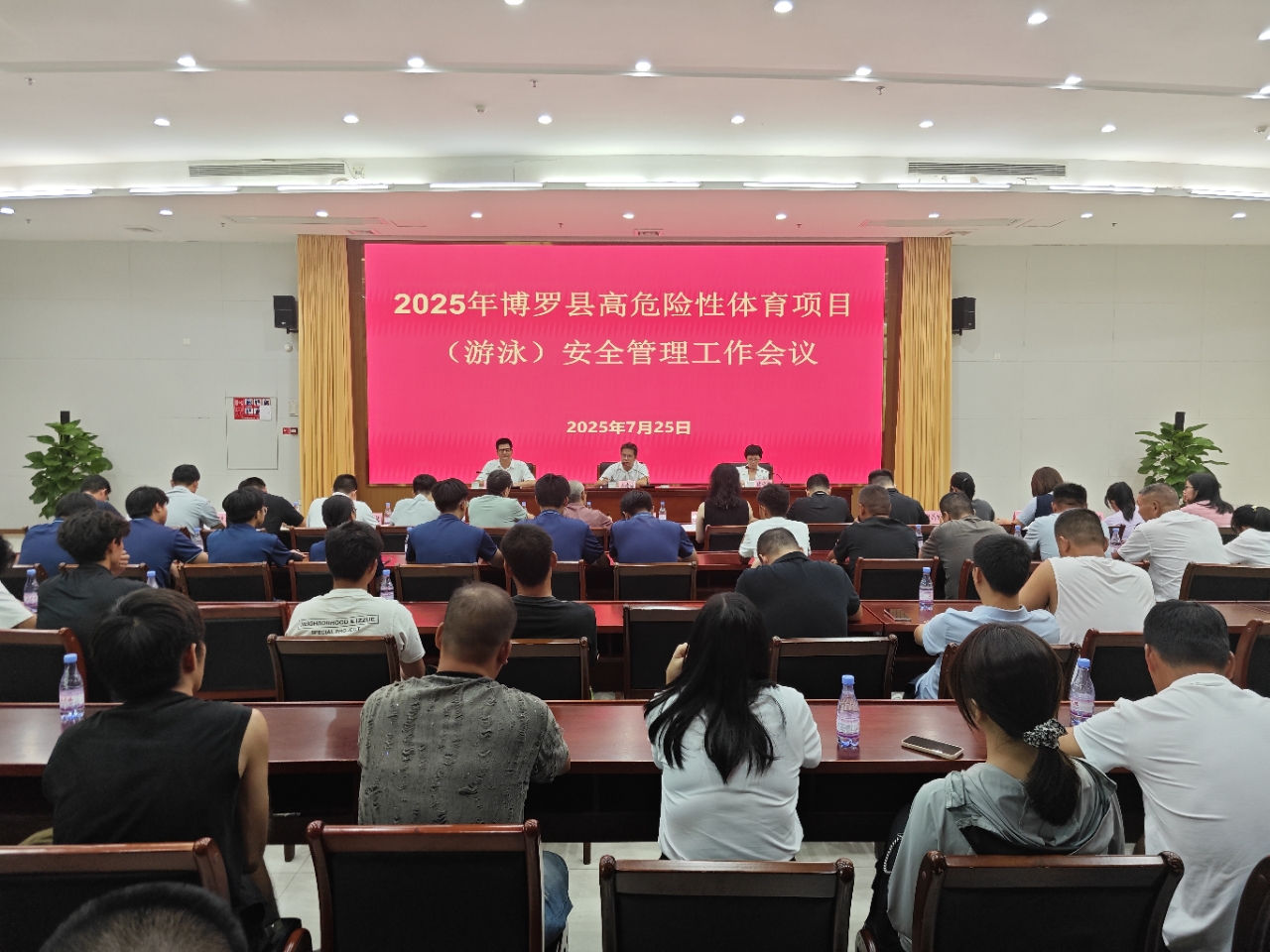 7月25日下午,2025年博羅縣高危險性體育項目(游泳)安全管理工作會議在縣文化中心召開。縣直有關部門、各鎮(街道)分管領導,以及全縣高危險性體育項目經營場所(游泳池)負責人共120人參加會議。縣委常委、副縣長吳德海出席會議并講話。縣文廣旅體局黨組書記、局長陳雪花主持會議,縣文廣旅體局全體班子成員參會。