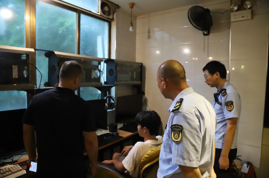 721日上午,執法大隊工作人員前往羅陽街道,對1家接納未成年人的網吧進行處理。