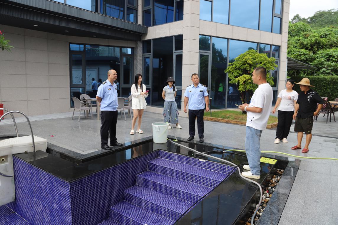721日下午,執法大隊工作人員前往橫河鎮開展高危險性體育項目(游泳池)專項整治檢查工作,共檢查9家游泳池。
