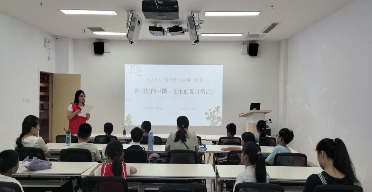 727日上午,博羅縣圖書館開展全民閱讀推廣活動“詩詞里的中國”—王維的夏日清涼,此次活動共20組親子家庭參與。