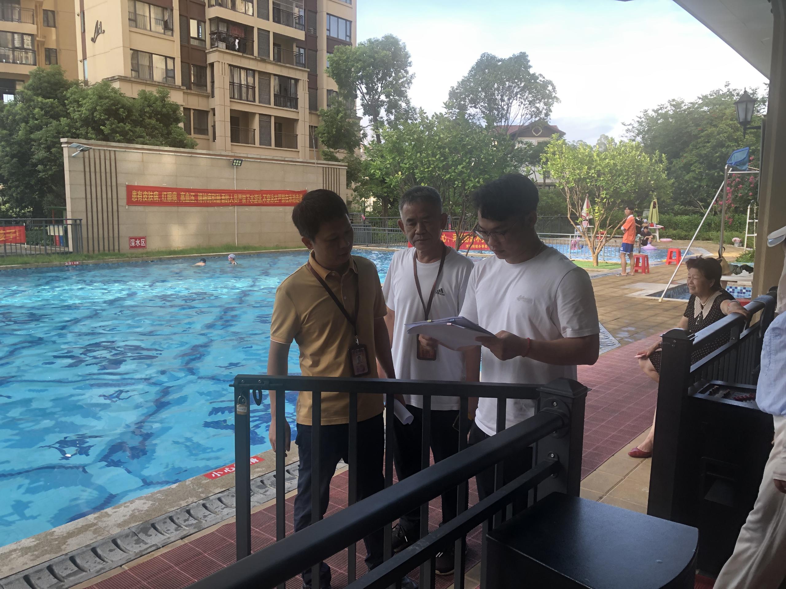 8月3日上午,謝文山副局長帶領市場管理股工作人員陪同市文廣旅體局領導,到羅陽天金游泳池開展“游泳池運行管理示范演練”籌備、預演工作。