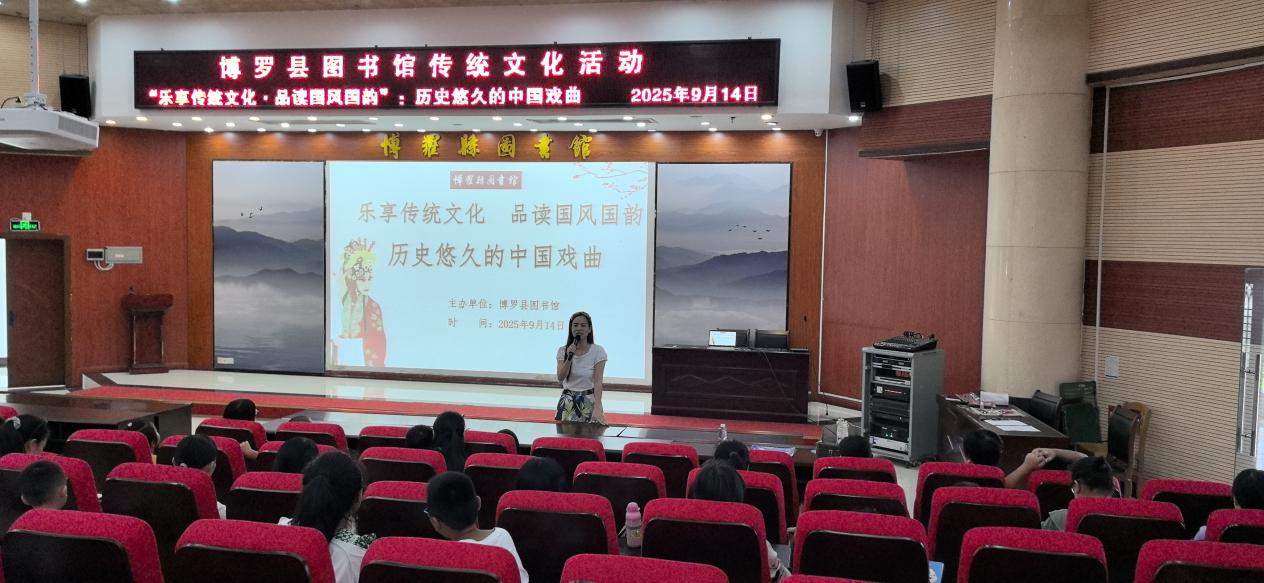 9月14日上午,博羅縣圖書館開展傳統(tǒng)文化活動“樂享傳統(tǒng)文化·品讀國風國韻”:歷史悠久的中國戲曲。約30組親子家庭參加。