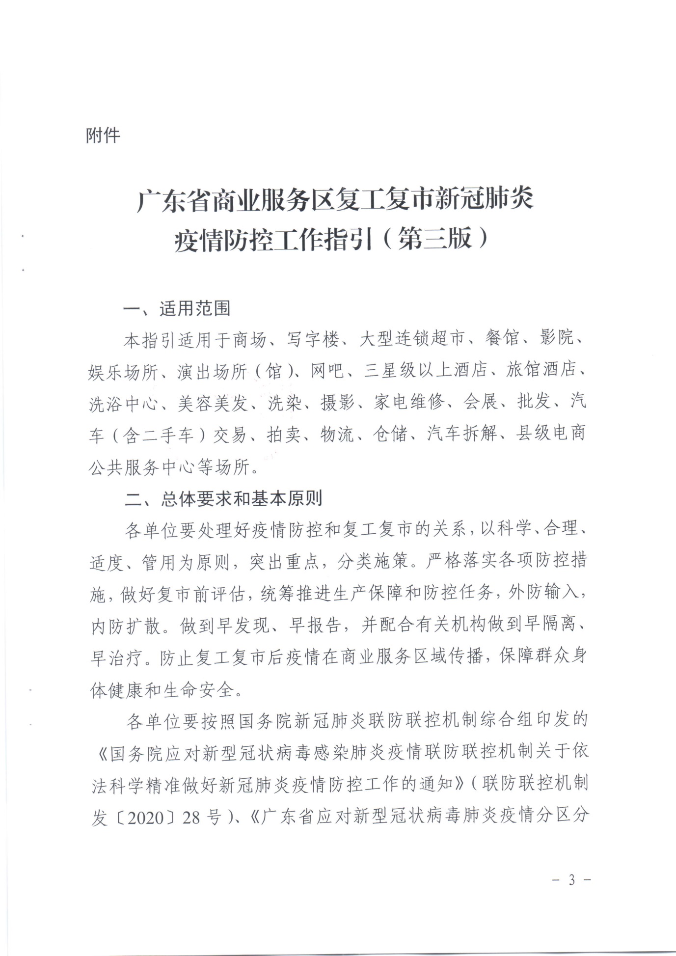 廣東省商業服務區復工復市新冠肺炎疫情防控工作指引(第三版)