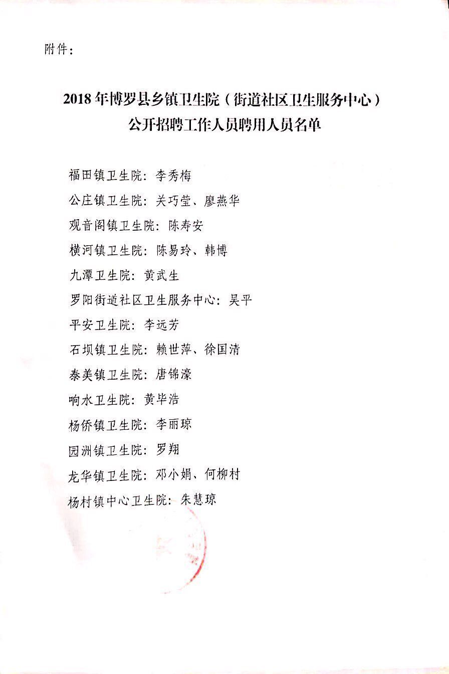 附件:2018年博羅縣鄉鎮衛生院(街道社區衛生服務中心)公開招聘工作人員聘用人員名單