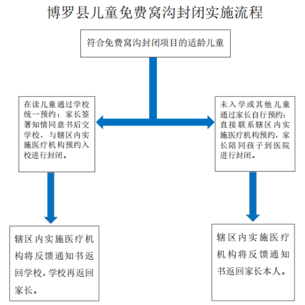 博羅縣轄區范圍內已萌出第一恒磨牙且存在深窩溝的適齡兒童,通過校方預約入校或家長與轄區內實施醫療機構預約帶至實施醫療機構進行窩溝封閉。