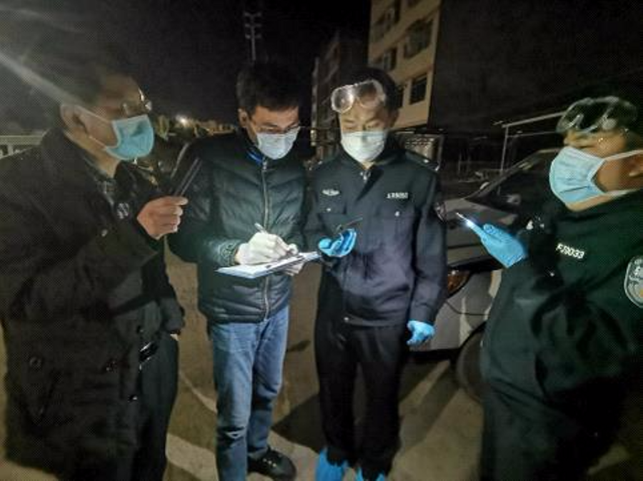 2月17日晚上9點,疾控中心專業人員在公安部門協助下,在泰美開展流調工作